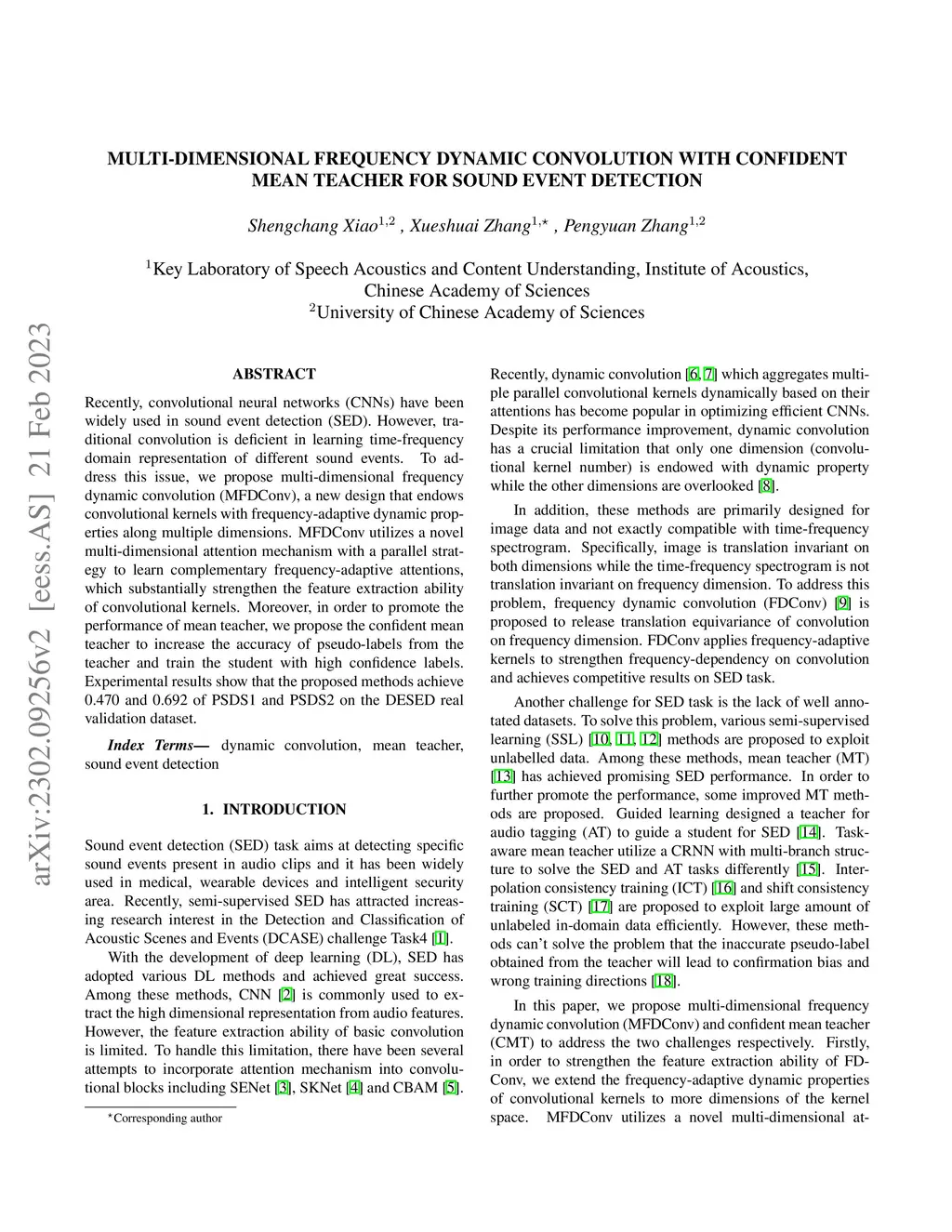 Recently, convolutional neural networks (CNNs) have been widely used in sound event detection (SED). However, traditional convolution is deficient in learning time-frequency domain representation of different sound events. To address this issue, we propose multi-dimensional frequency dynamic convolution (MFDConv), a new design that endows convolutional kernels with frequency-adaptive dynamic properties along multiple dimensions. MFDConv utilizes a novel multi-dimensional attention mechanism with a parallel strategy to learn complementary frequency-adaptive attentions, which substantially strengthen the feature extraction ability of convolutional kernels. Moreover, in order to promote the performance of mean teacher, we propose the confident mean teacher to increase the accuracy of pseudo-labels from the teacher and train the student with high confidence labels. Experimental results show that the proposed methods achieve 0.470 and 0.692 of PSDS1 and PSDS2 on the DESED real validation dataset.