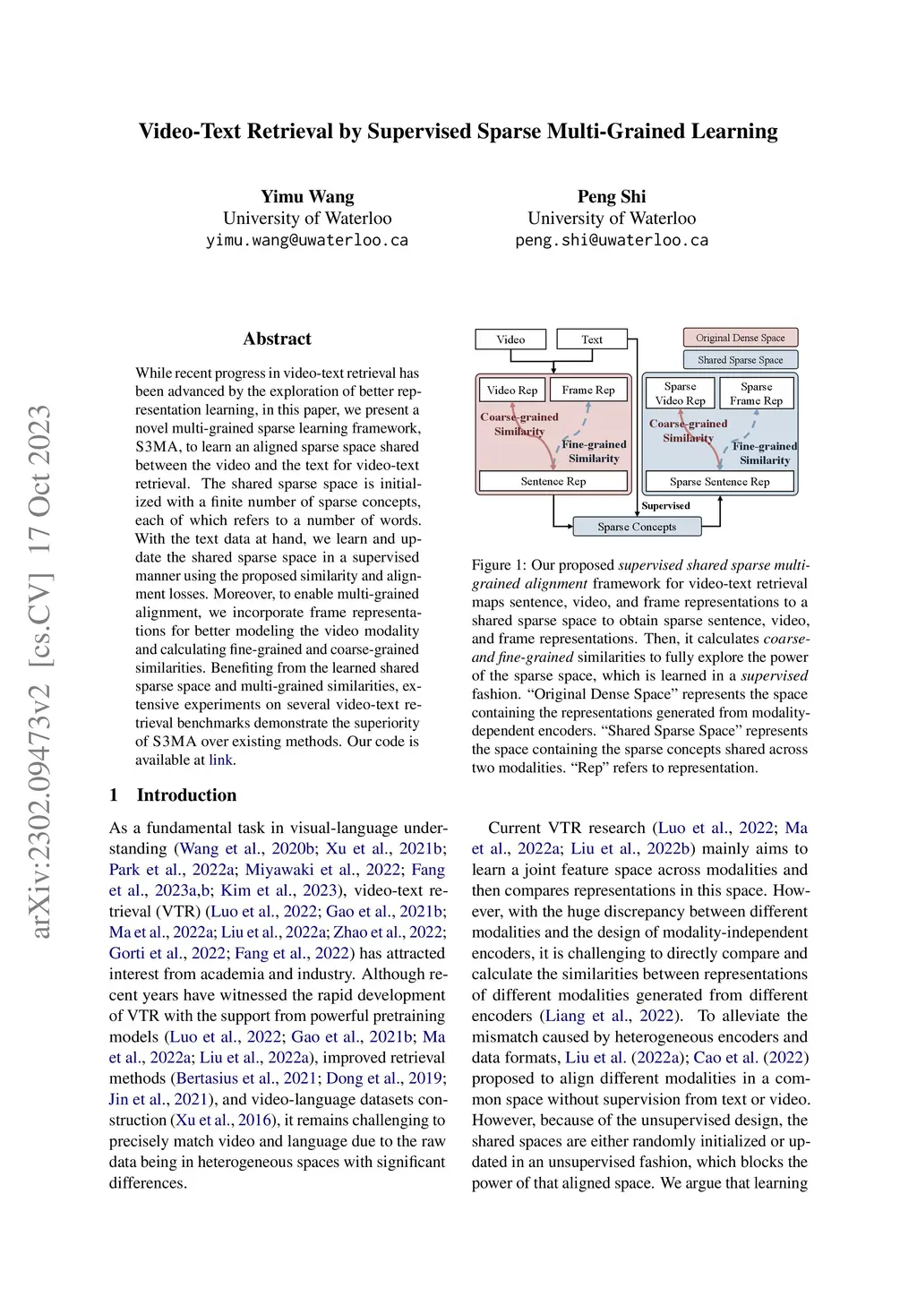 Video-Text Retrieval by Supervised Sparse Multi-Grained Learning