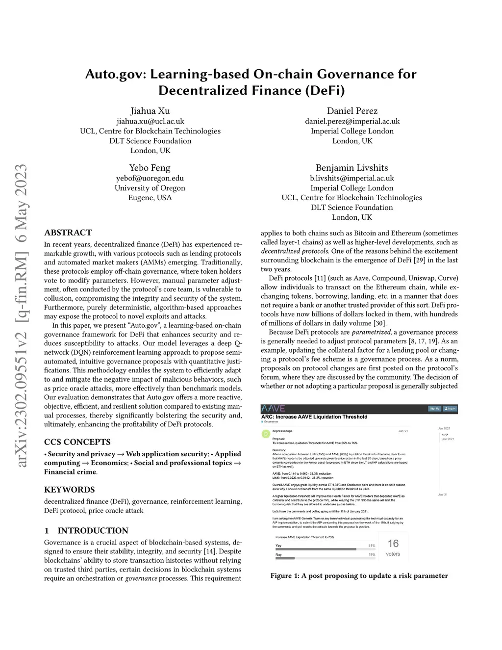 Auto.gov: Learning-based Governance for Decentralized Finance (DeFi)