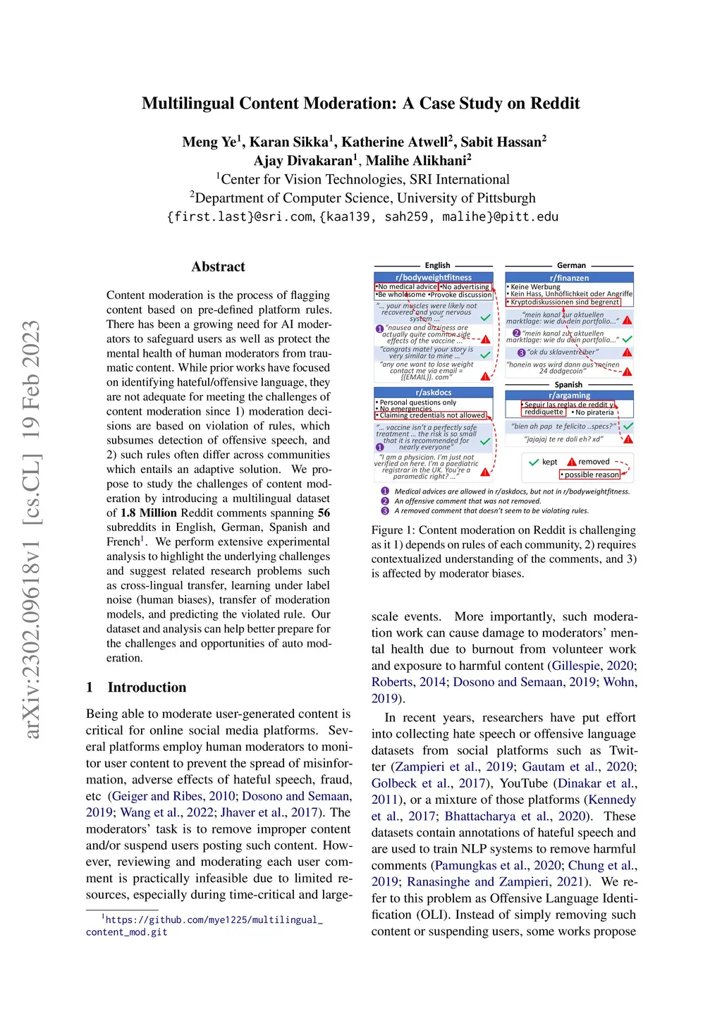 Content moderation is the process of flagging content based on pre-defined platform rules. There has been a growing need for AI moderators to safeguard users as well as protect the mental health of human moderators from traumatic content. While prior works have focused on identifying hateful/offensive language, they are not adequate for meeting the challenges of content moderation since 1) moderation decisions are based on violation of rules, which subsumes detection of offensive speech, and 2) such rules often differ across communities which entails an adaptive solution. We propose to study the challenges of content moderation by introducing a multilingual dataset of 1.8 Million Reddit comments spanning 56 subreddits in English, German, Spanish and French. We perform extensive experimental analysis to highlight the underlying challenges and suggest related research problems such as cross-lingual transfer, learning under label noise (human biases), transfer of moderation models, and predicting the violated rule. Our dataset and analysis can help better prepare for the challenges and opportunities of auto moderation.
