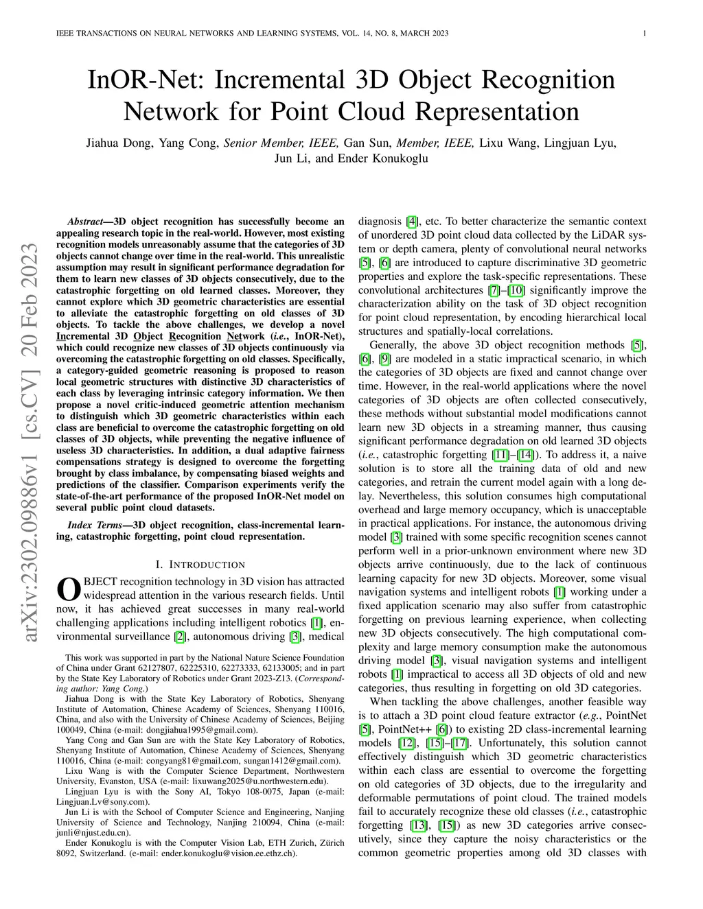 InOR-Net: Incremental 3D Object Recognition Network for Point Cloud