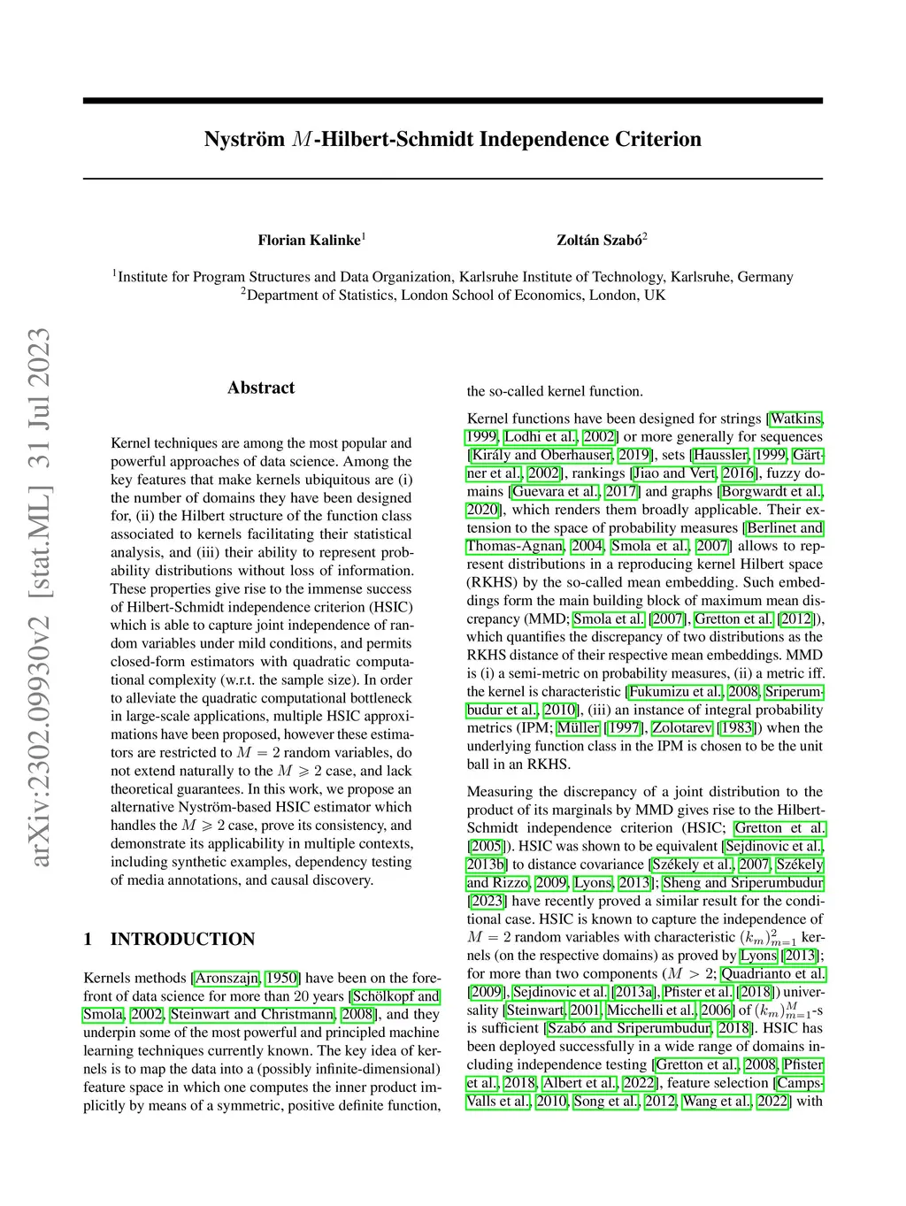 Nyström -Hilbert-Schmidt Independence Criterion