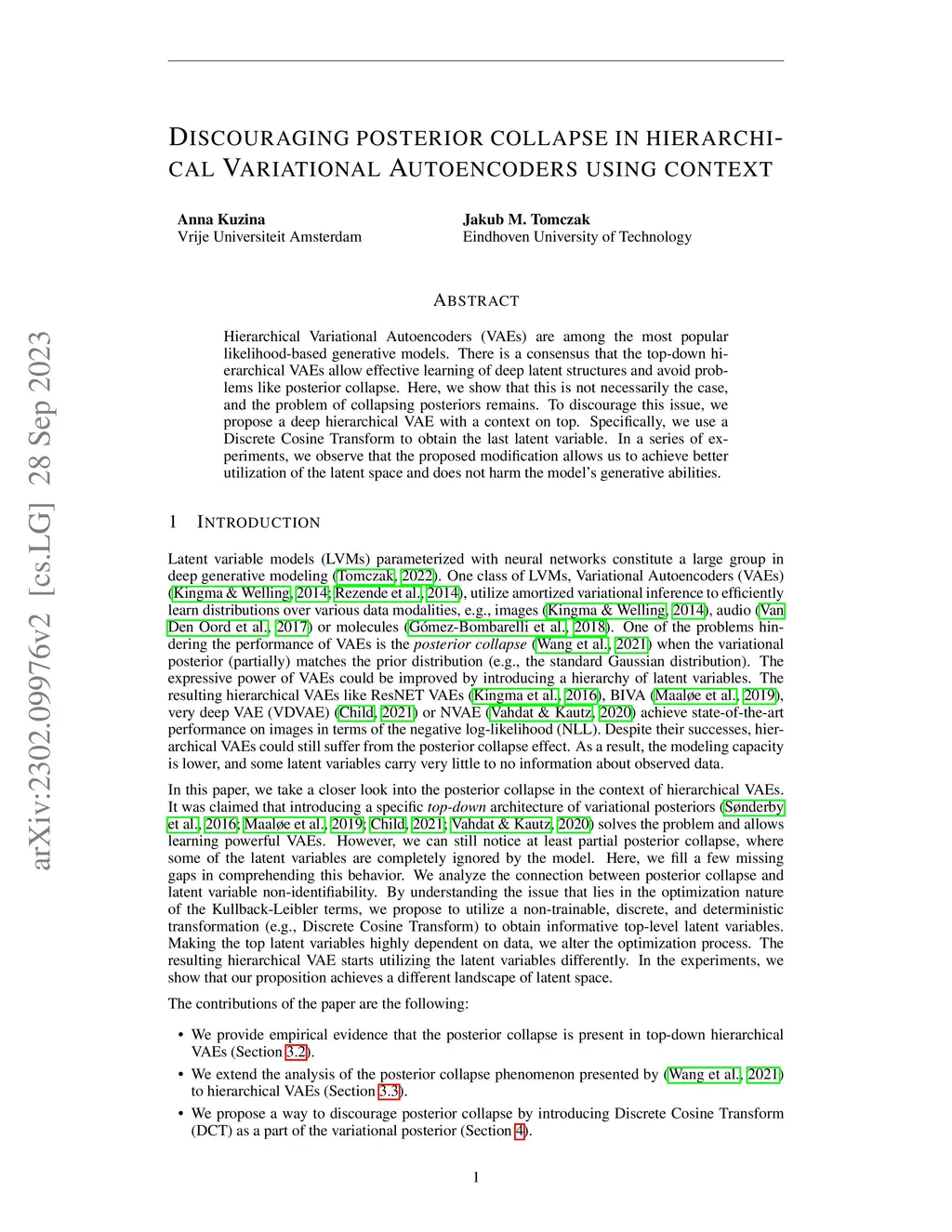 Hierarchical Variational Autoencoders (VAEs) are among the most popular likelihood-based generative models. There is a consensus that the top-down hierarchical VAEs allow effective learning of deep latent structures and avoid problems like posterior collapse. Here, we show that this is not necessarily the case, and the problem of collapsing posteriors remains. To discourage this issue, we propose a deep hierarchical VAE with a context on top. Specifically, we use a Discrete Cosine Transform to obtain the last latent variable. In a series of experiments, we observe that the proposed modification allows us to achieve better utilization of the latent space and does not harm the model's generative abilities.