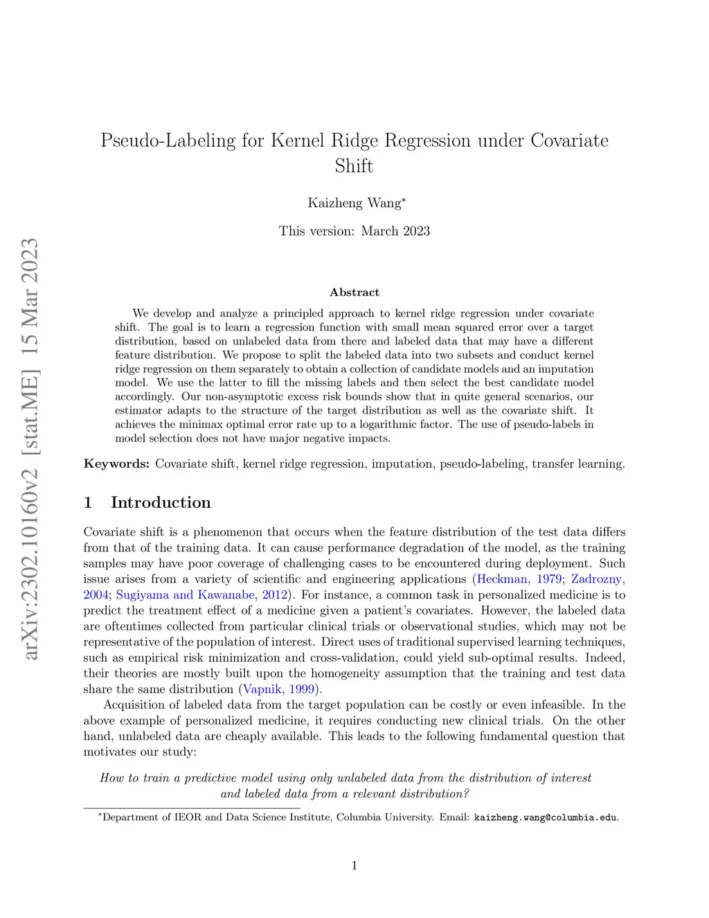 Pseudo-Labeling for Kernel Ridge Regression under Covariate Shift