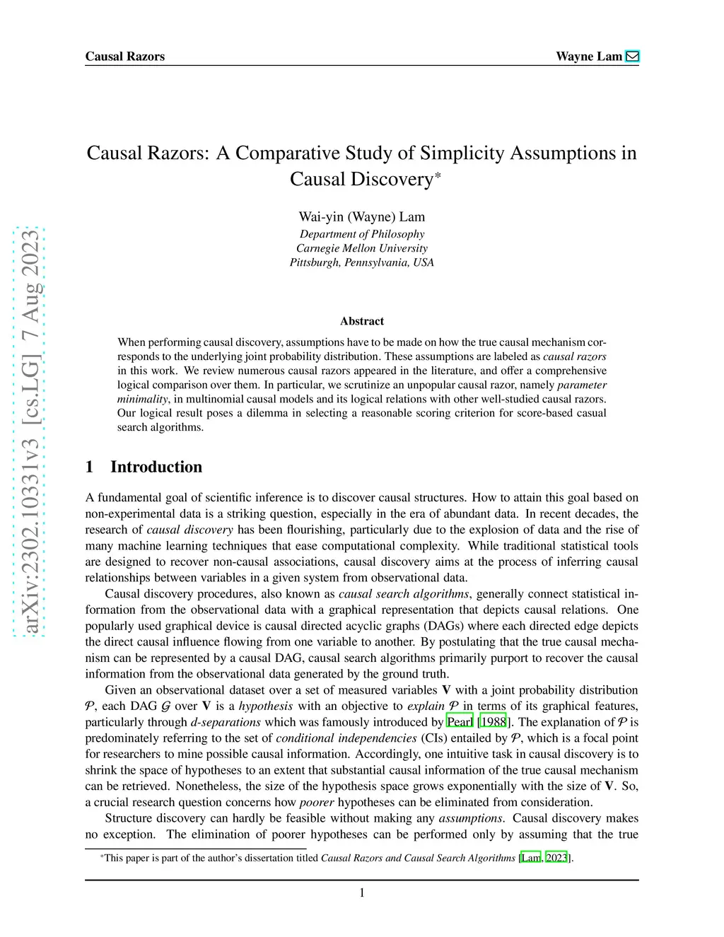 When performing causal discovery, assumptions have to be made on how the true causal mechanism corresponds to the underlying joint probability distribution. These assumptions are labeled as causal razors in this work. We review numerous causal razors that appeared in the literature, and offer a comprehensive logical comparison of them. In particular, we scrutinize an unpopular causal razor, namely parameter minimality, in multinomial causal models and its logical relations with other well-studied causal razors. Our logical result poses a dilemma in selecting a reasonable scoring criterion for score-based casual search algorithms.