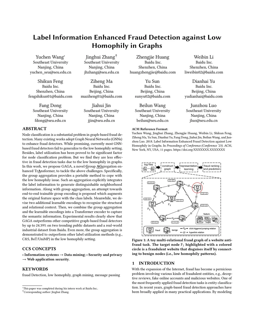 Node classification is a substantial problem in graph-based fraud detection. Many existing works adopt Graph Neural Networks (GNNs) to enhance fraud detectors. While promising, currently most GNN-based fraud detectors fail to generalize to the low homophily setting. Besides, label utilization has been proved to be significant factor for node classification problem. But we find they are less effective in fraud detection tasks due to the low homophily in graphs. In this work, we propose GAGA, a novel Group AGgregation enhanced TrAnsformer, to tackle the above challenges. Specifically, the group aggregation provides a portable method to cope with the low homophily issue. Such an aggregation explicitly integrates the label information to generate distinguishable neighborhood information. Along with group aggregation, an attempt towards end-to-end trainable group encoding is proposed which augments the original feature space with the class labels. Meanwhile, we devise two additional learnable encodings to recognize the structural and relational context. Then, we combine the group aggregation and the learnable encodings into a Transformer encoder to capture the semantic information. Experimental results clearly show that GAGA outperforms other competitive graph-based fraud detectors by up to 24.39% on two trending public datasets and a real-world industrial dataset from Anonymous. Even more, the group aggregation is demonstrated to outperform other label utilization methods (e.g., C&S, BoT/UniMP) in the low homophily setting.