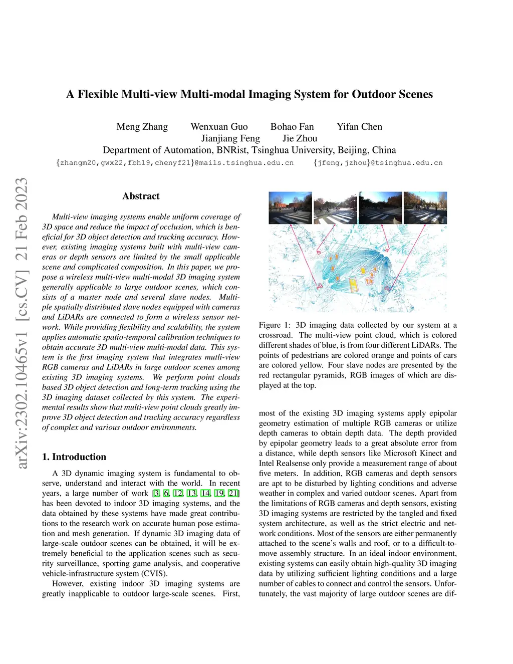 Multi-view imaging systems enable uniform coverage of 3D space and reduce the impact of occlusion, which is beneficial for 3D object detection and tracking accuracy. However, existing imaging systems built with multi-view cameras or depth sensors are limited by the small applicable scene and complicated composition. In this paper, we propose a wireless multi-view multi-modal 3D imaging system generally applicable to large outdoor scenes, which consists of a master node and several slave nodes. Multiple spatially distributed slave nodes equipped with cameras and LiDARs are connected to form a wireless sensor network. While providing flexibility and scalability, the system applies automatic spatio-temporal calibration techniques to obtain accurate 3D multi-view multi-modal data. This system is the first imaging system that integrates mutli-view RGB cameras and LiDARs in large outdoor scenes among existing 3D imaging systems. We perform point clouds based 3D object detection and long-term tracking using the 3D imaging dataset collected by this system. The experimental results show that multi-view point clouds greatly improve 3D object detection and tracking accuracy regardless of complex and various outdoor environments.