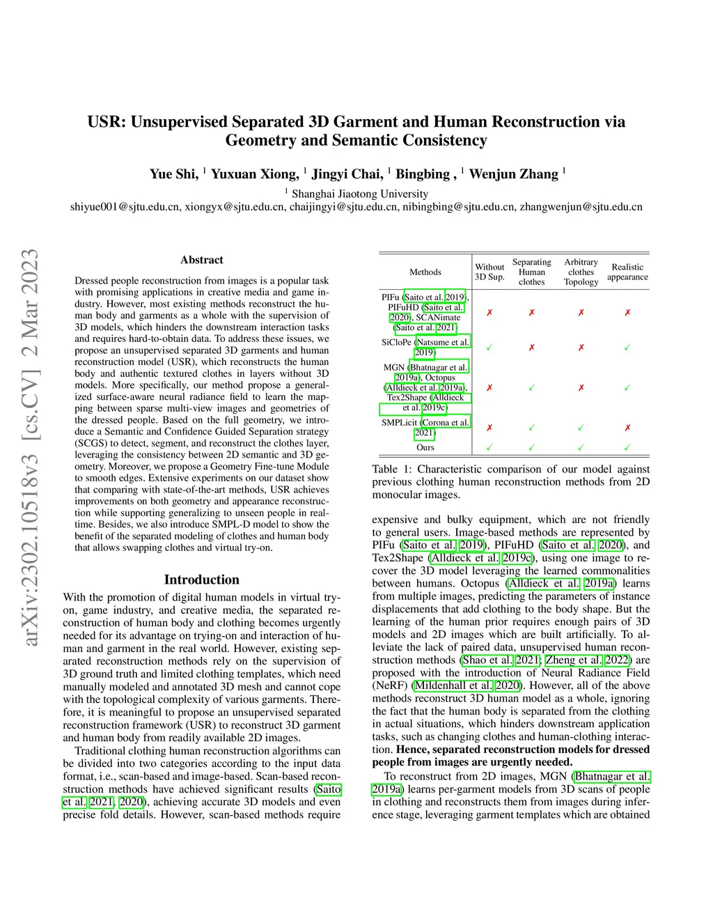 USR: Unsupervised Separated 3D Garment and Human Reconstruction via