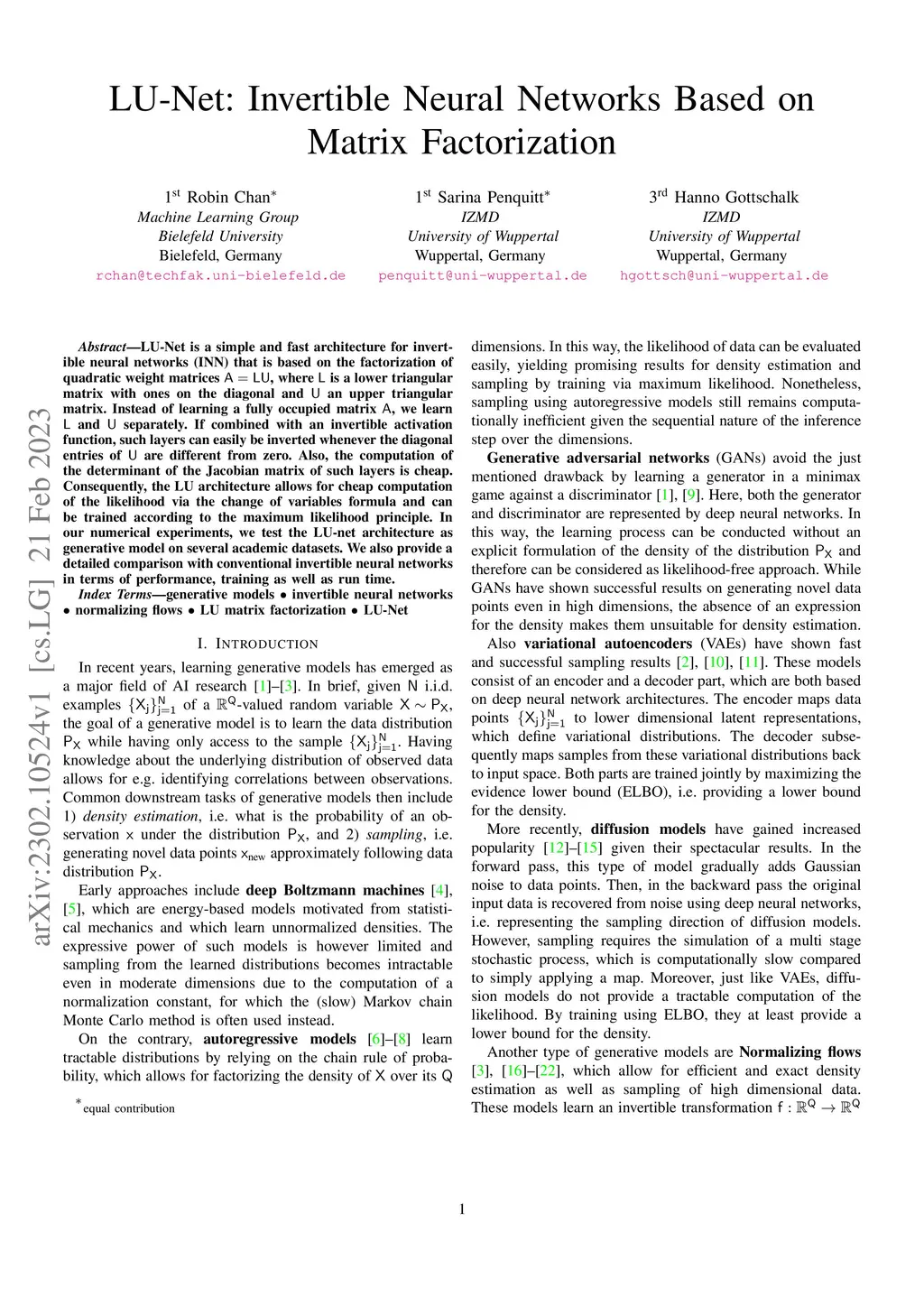 LU-Net: Invertible Neural Networks Based on Matrix Factorization