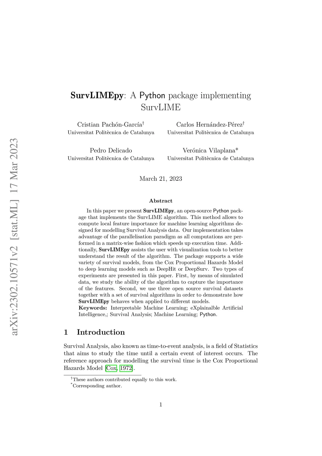 In this paper we present SurvLIMEpy, an open-source Python package that implements the SurvLIME algorithm. This method allows to compute local feature importance for machine learning algorithms designed for modelling Survival Analysis data. Our implementation takes advantage of the parallelisation paradigm as all computations are performed in a matrix-wise fashion which speeds up execution time. Additionally, SurvLIMEpy assists the user with visualization tools to better understand the result of the algorithm. The package supports a wide variety of survival models, from the Cox Proportional Hazards Model to deep learning models such as DeepHit or DeepSurv. Two types of experiments are presented in this paper. First, by means of simulated data, we study the ability of the algorithm to capture the importance of the features. Second, we use three open source survival datasets together with a set of survival algorithms in order to demonstrate how SurvLIMEpy behaves when applied to different models.