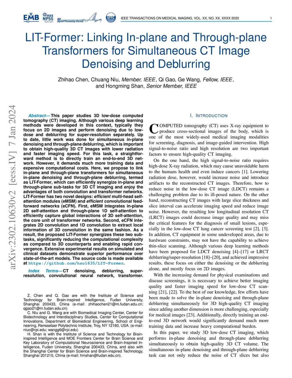 LIT-Former: Linking In-plane and Through-plane Transformers for