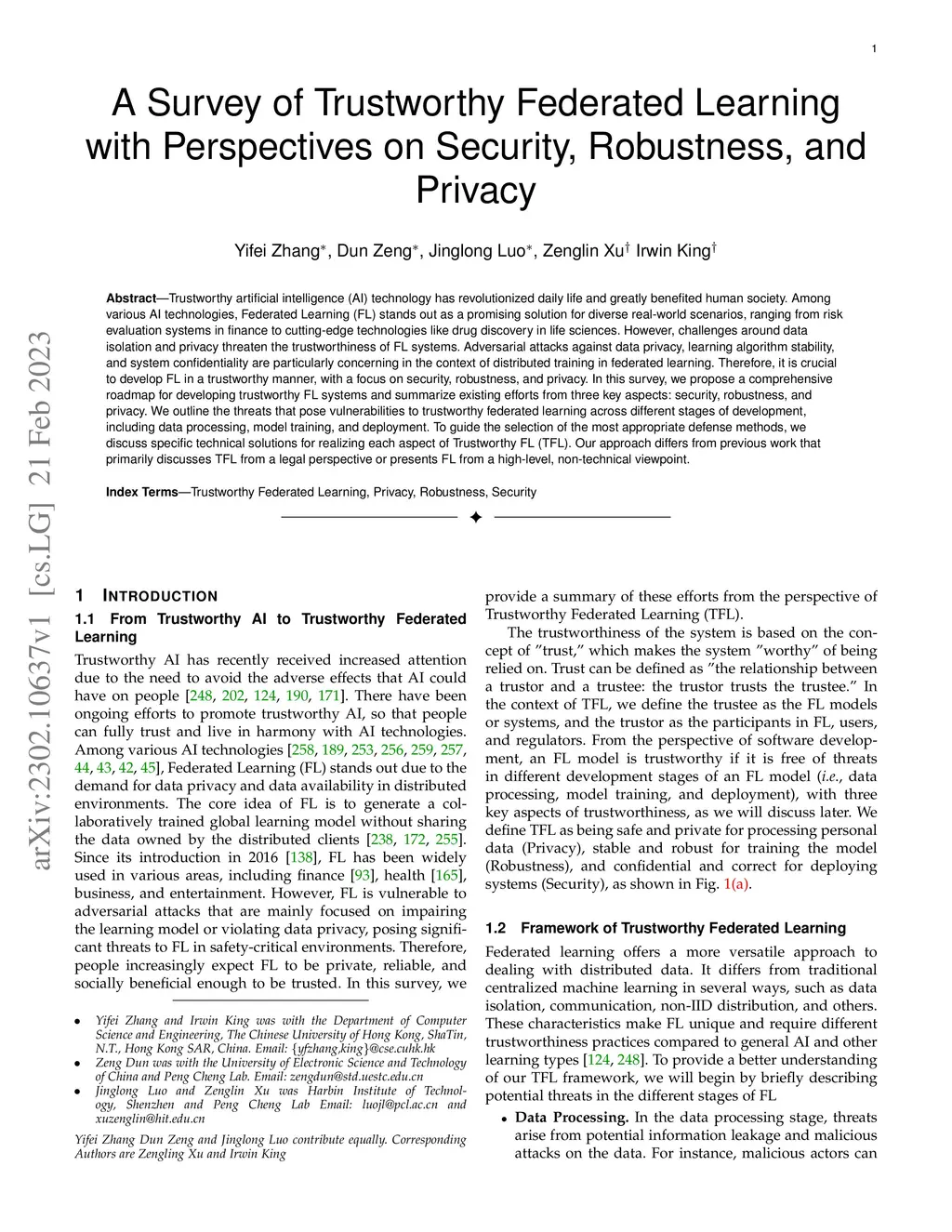 Trustworthy artificial intelligence (AI) technology has revolutionized daily life and greatly benefited human society. Among various AI technologies, Federated Learning (FL) stands out as a promising solution for diverse real-world scenarios, ranging from risk evaluation systems in finance to cutting-edge technologies like drug discovery in life sciences. However, challenges around data isolation and privacy threaten the trustworthiness of FL systems. Adversarial attacks against data privacy, learning algorithm stability, and system confidentiality are particularly concerning in the context of distributed training in federated learning. Therefore, it is crucial to develop FL in a trustworthy manner, with a focus on security, robustness, and privacy. In this survey, we propose a comprehensive roadmap for developing trustworthy FL systems and summarize existing efforts from three key aspects: security, robustness, and privacy. We outline the threats that pose vulnerabilities to trustworthy federated learning across different stages of development, including data processing, model training, and deployment. To guide the selection of the most appropriate defense methods, we discuss specific technical solutions for realizing each aspect of Trustworthy FL (TFL). Our approach differs from previous work that primarily discusses TFL from a legal perspective or presents FL from a high-level, non-technical viewpoint.