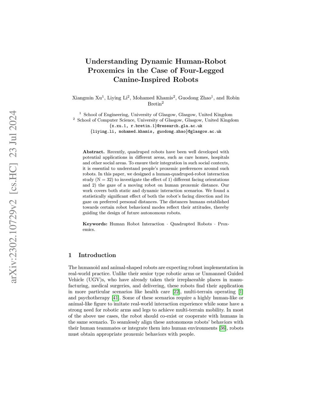 Understanding Dynamic Human-Robot Proxemics in the Case of Four-Legged