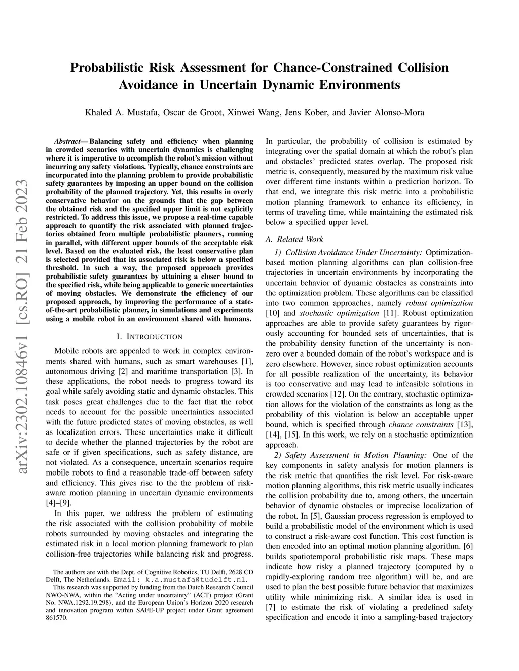 Balancing safety and efficiency when planning in crowded scenarios with uncertain dynamics is challenging where it is imperative to accomplish the robot's mission without incurring any safety violations. Typically, chance constraints are incorporated into the planning problem to provide probabilistic safety guarantees by imposing an upper bound on the collision probability of the planned trajectory. Yet, this results in overly conservative behavior on the grounds that the gap between the obtained risk and the specified upper limit is not explicitly restricted. To address this issue, we propose a real-time capable approach to quantify the risk associated with planned trajectories obtained from multiple probabilistic planners, running in parallel, with different upper bounds of the acceptable risk level. Based on the evaluated risk, the least conservative plan is selected provided that its associated risk is below a specified threshold. In such a way, the proposed approach provides probabilistic safety guarantees by attaining a closer bound to the specified risk, while being applicable to generic uncertainties of moving obstacles. We demonstrate the efficiency of our proposed approach, by improving the performance of a state-of-the-art probabilistic planner, in simulations and experiments using a mobile robot in an environment shared with humans.