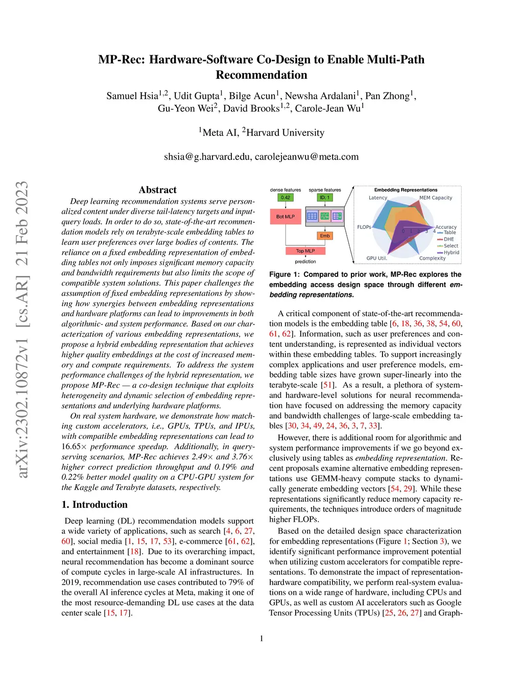 MP-Rec: Hardware-Software Co-Design to Enable Multi-Path Recommendation