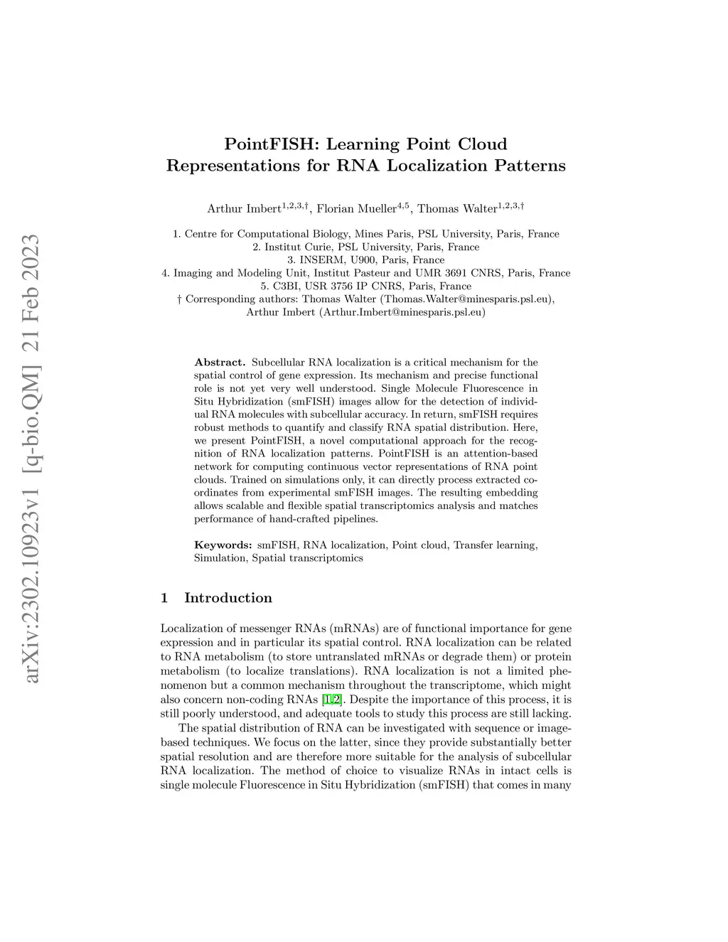 PointFISH -- learning point cloud representations for RNA localization
