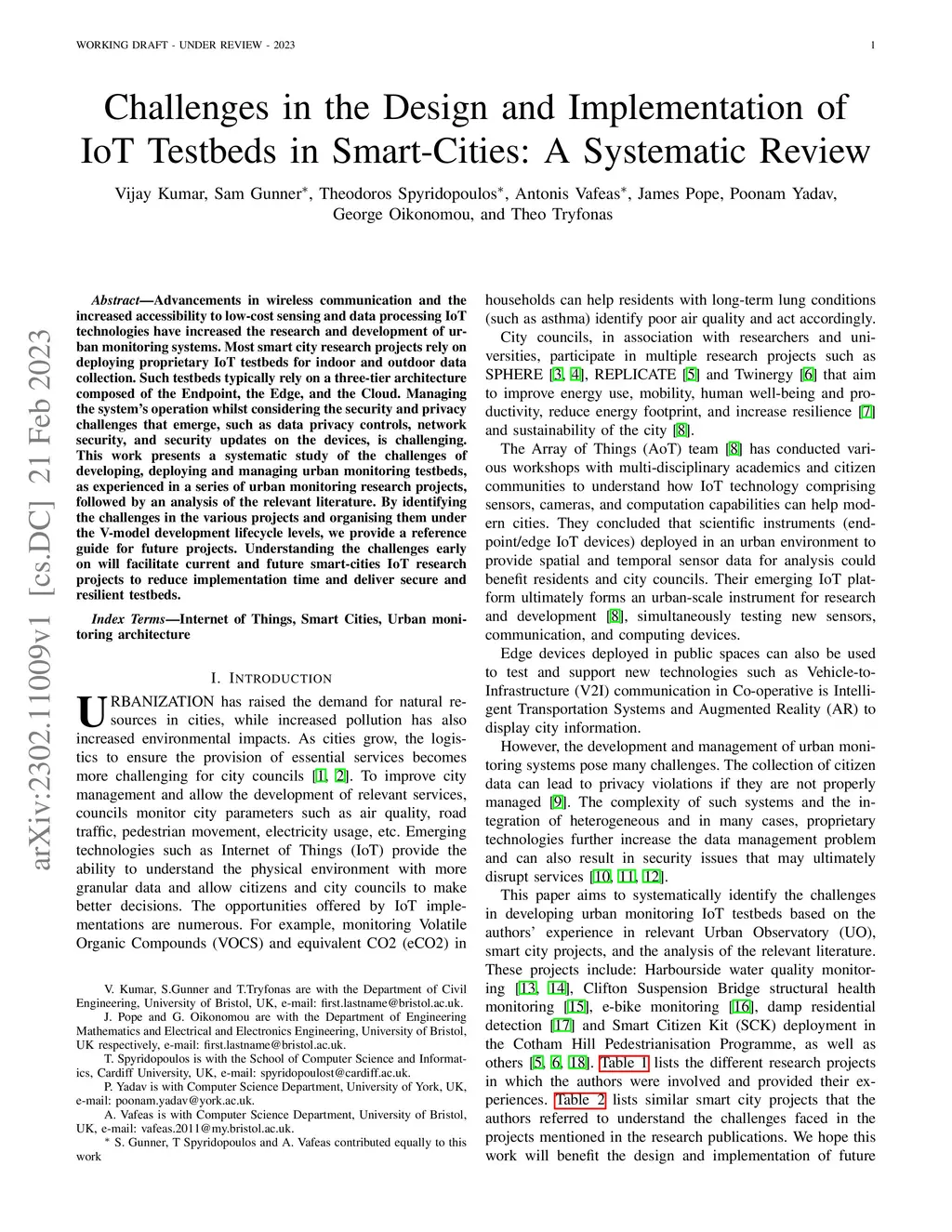 Advancements in wireless communication and the increased accessibility to low-cost sensing and data processing IoT technologies have increased the research and development of urban monitoring systems. Most smart city research projects rely on deploying proprietary IoT testbeds for indoor and outdoor data collection. Such testbeds typically rely on a three-tier architecture composed of the Endpoint, the Edge, and the Cloud. Managing the system's operation whilst considering the security and privacy challenges that emerge, such as data privacy controls, network security, and security updates on the devices, is challenging. This work presents a systematic study of the challenges of developing, deploying and managing urban monitoring testbeds, as experienced in a series of urban monitoring research projects, followed by an analysis of the relevant literature. By identifying the challenges in the various projects and organising them under the V-model development lifecycle levels, we provide a reference guide for future projects. Understanding the challenges early on will facilitate current and future smart-cities IoT research projects to reduce implementation time and deliver secure and resilient testbeds.