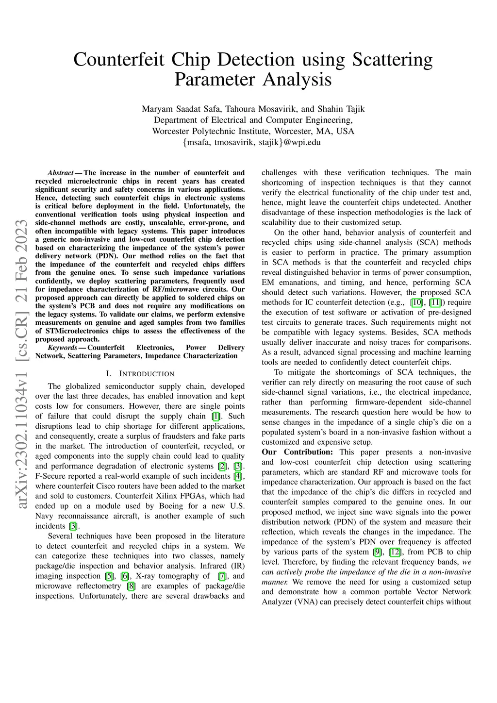 Counterfeit Chip Detection using Scattering Parameter Analysis