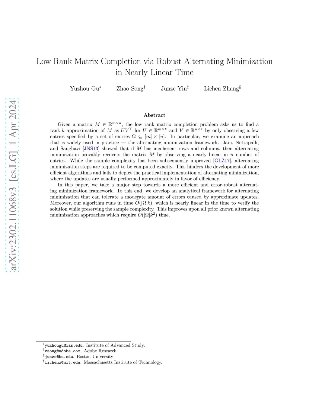 Low Rank Matrix Completion via Robust Alternating Minimization in Nearly