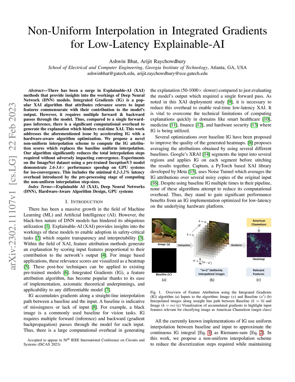 There has been a surge in Explainable-AI (XAI) methods that provide insights into the workings of Deep Neural Network (DNN) models. Integrated Gradients (IG) is a popular XAI algorithm that attributes relevance scores to input features commensurate with their contribution to the model's output. However, it requires multiple forward \& backward passes through the model. Thus, compared to a single forward-pass inference, there is a significant computational overhead to generate the explanation which hinders real-time XAI. This work addresses the aforementioned issue by accelerating IG with a hardware-aware algorithm optimization. We propose a novel non-uniform interpolation scheme to compute the IG attribution scores which replaces the baseline uniform interpolation. Our algorithm significantly reduces the total interpolation steps required without adversely impacting convergence. Experiments on the ImageNet dataset using a pre-trained InceptionV3 model demonstrate \textit{2.6-3.6} performance speedup on GPU systems for iso-convergence. This includes the minimal \textit{0.2-3.2}\% latency overhead introduced by the pre-processing stage of computing the non-uniform interpolation step-sizes.