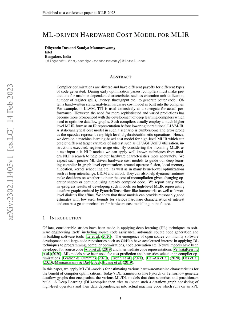 During early optimization passes, compilers must make predictions for machine-dependent characteristics such as execution unit utilization, number of register spills, latency, throughput etc. to generate better code. Often a hand-written static/analytical hardware cost model is built into the compiler. However, the need for more sophisticated and varied predictions has become more pronounced with the development of deep learning compilers which need to optimize dataflow graphs. Such compilers usually employ a much higher level MLIR form as an IR representation before lowering to traditional LLVM-IR. A static/analytical cost model in such a scenario is cumbersome and error prone as the opcodes represent very high level algebraic/arithmetic operations. Hence, we develop a machine learning-based cost model for high-level MLIR which can predict different target variables of interest such as CPU/GPU/xPU utilization, instructions executed, register usage etc. By considering the incoming MLIR as a text input a la NLP models we can apply well-known techniques from modern NLP research to help predict hardware characteristics more accurately. We expect such precise ML-driven hardware cost models to guide our deep learning compiler in graph level optimizations around operator fusion, local memory allocation, kernel scheduling etc. as well as in many kernel-level optimizations such as loop interchange, LICM and unroll. We report early work-in -progress results of developing such models on high-level MLIR representing dataflow graphs emitted by Pytorch/Tensorflow-like frameworks as well as lower-level dialects like affine. We show that these models can provide reasonably good estimates with low error bounds for various hardware characteristics of interest and can be a go-to mechanism for hardware cost modelling in the future.