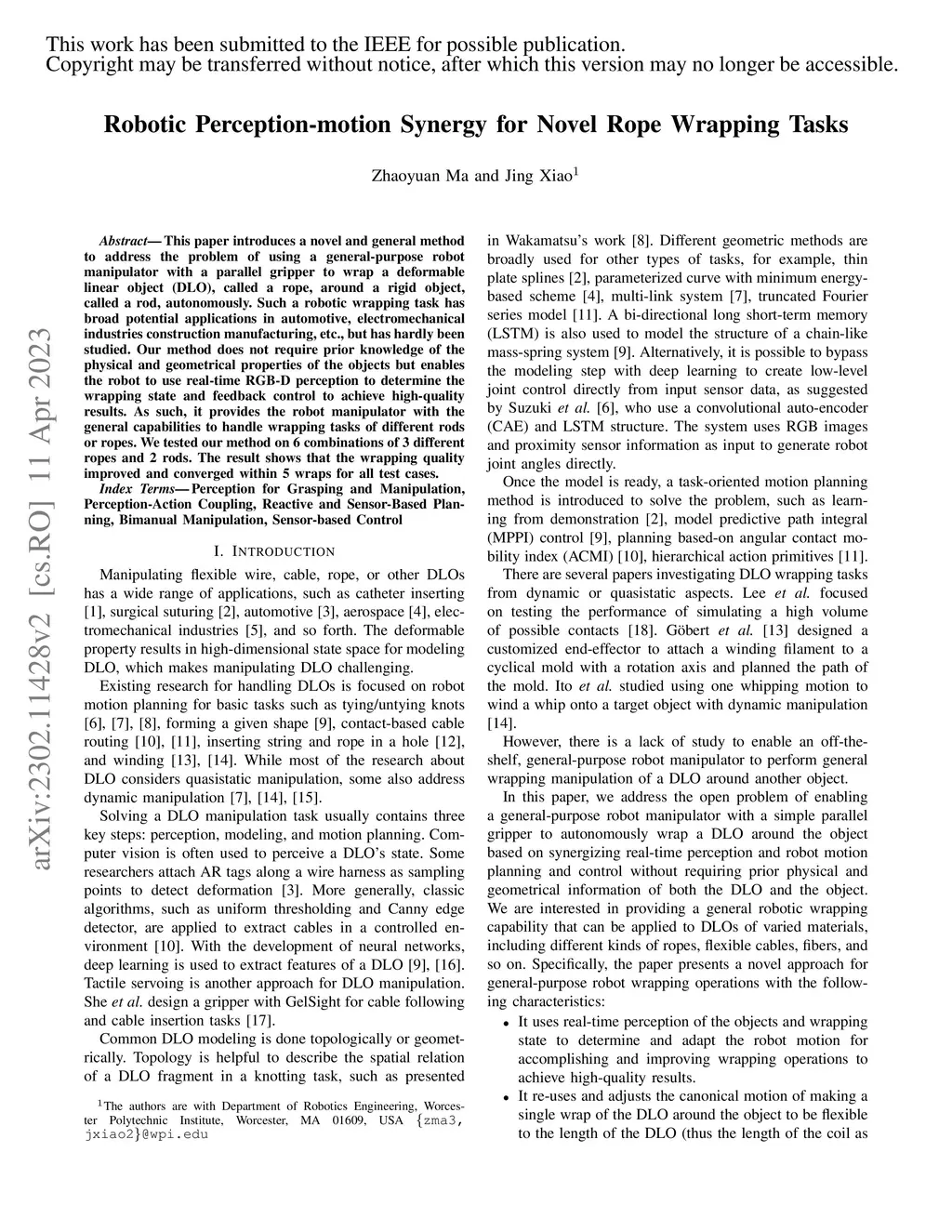 Robotic Perception-motion Synergy for Novel Rope Wrapping Tasks