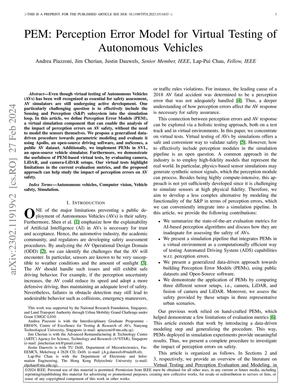 PEM: Perception Error Model for Virtual Testing of Autonomous Vehicles