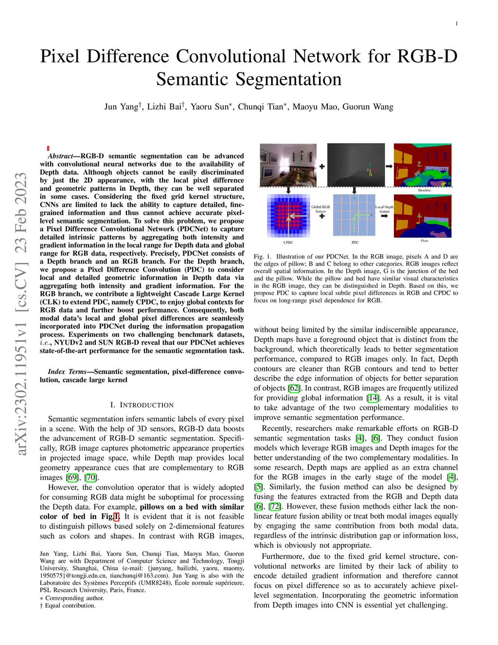 Pixel Difference Convolutional Network for RGB-D Semantic Segmentation