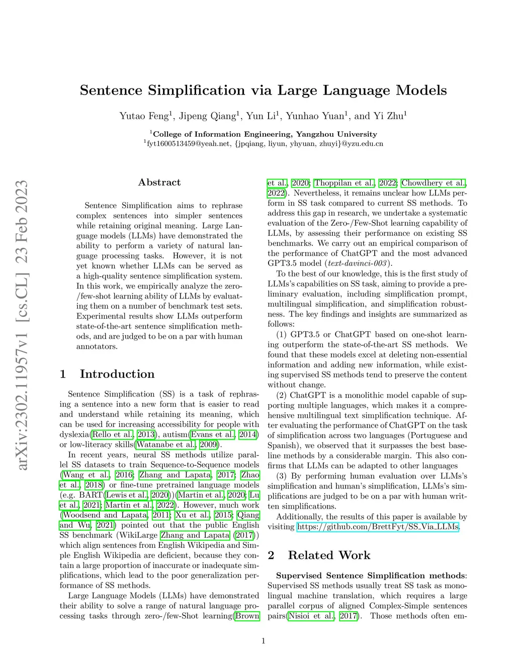 Sentence Simplification aims to rephrase complex sentences into simpler sentences while retaining original meaning. Large Language models (LLMs) have demonstrated the ability to perform a variety of natural language processing tasks. However, it is not yet known whether LLMs can be served as a high-quality sentence simplification system. In this work, we empirically analyze the zero-/few-shot learning ability of LLMs by evaluating them on a number of benchmark test sets. Experimental results show LLMs outperform state-of-the-art sentence simplification methods, and are judged to be on a par with human annotators.
