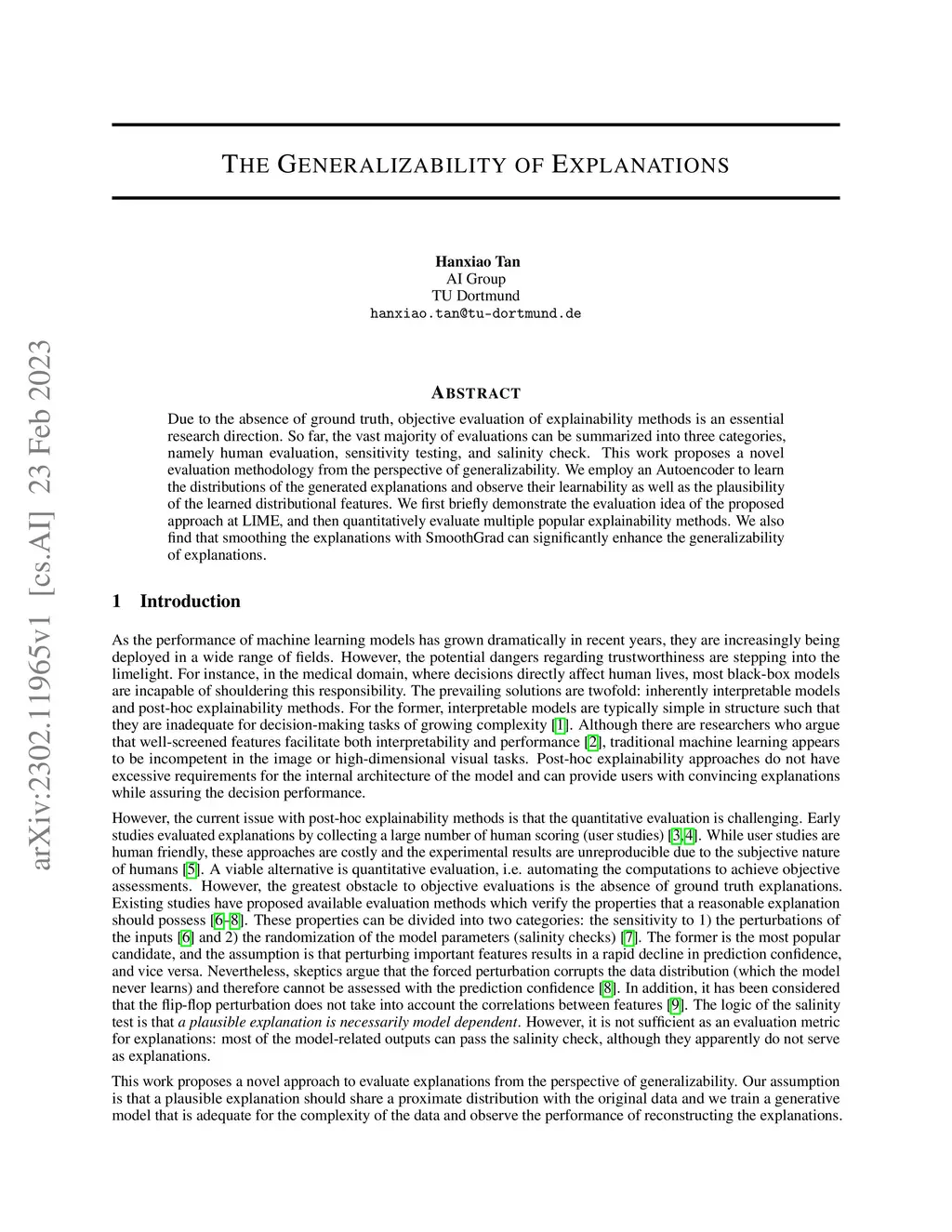 Due to the absence of ground truth, objective evaluation of explainability methods is an essential research direction. So far, the vast majority of evaluations can be summarized into three categories, namely human evaluation, sensitivity testing, and salinity check. This work proposes a novel evaluation methodology from the perspective of generalizability. We employ an Autoencoder to learn the distributions of the generated explanations and observe their learnability as well as the plausibility of the learned distributional features. We first briefly demonstrate the evaluation idea of the proposed approach at LIME, and then quantitatively evaluate multiple popular explainability methods. We also find that smoothing the explanations with SmoothGrad can significantly enhance the generalizability of explanations.