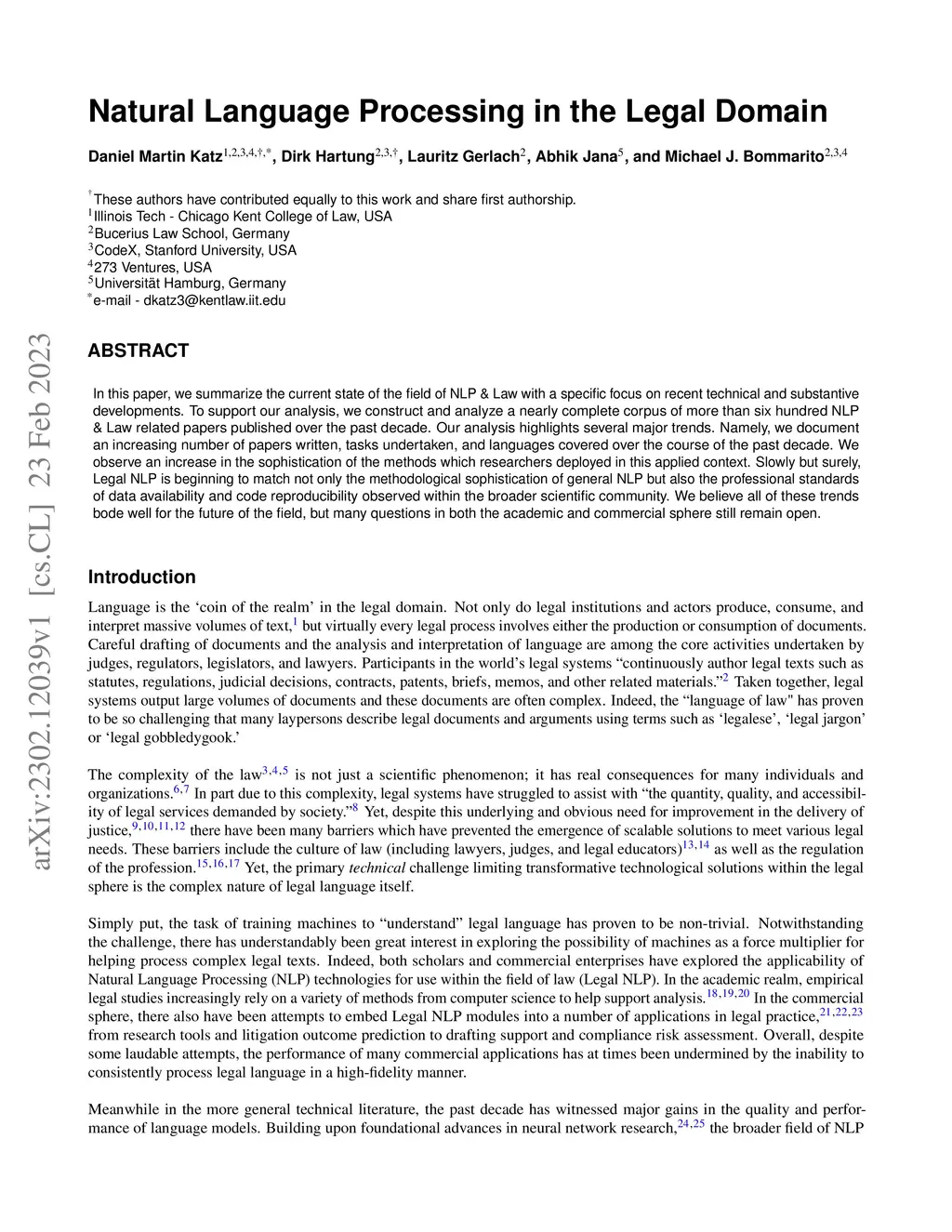 In this paper, we summarize the current state of the field of NLP & Law with a specific focus on recent technical and substantive developments. To support our analysis, we construct and analyze a nearly complete corpus of more than six hundred NLP & Law related papers published over the past decade. Our analysis highlights several major trends. Namely, we document an increasing number of papers written, tasks undertaken, and languages covered over the course of the past decade. We observe an increase in the sophistication of the methods which researchers deployed in this applied context. Slowly but surely, Legal NLP is beginning to match not only the methodological sophistication of general NLP but also the professional standards of data availability and code reproducibility observed within the broader scientific community. We believe all of these trends bode well for the future of the field, but many questions in both the academic and commercial sphere still remain open.