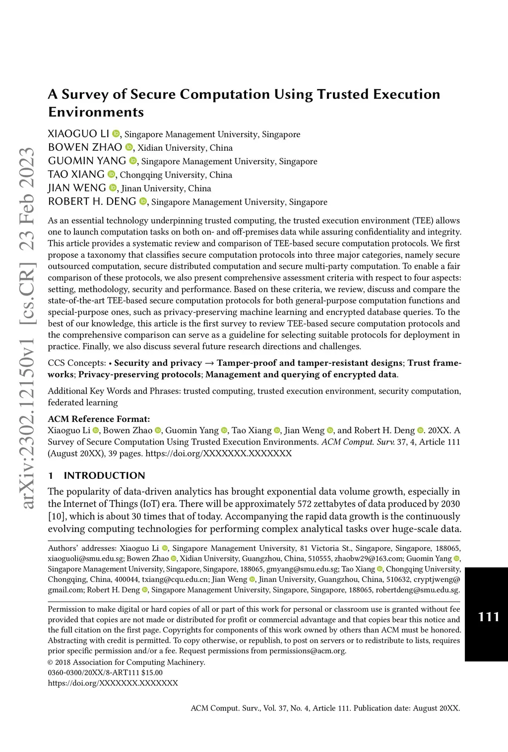 A Survey of Secure Computation Using Trusted Execution Environments