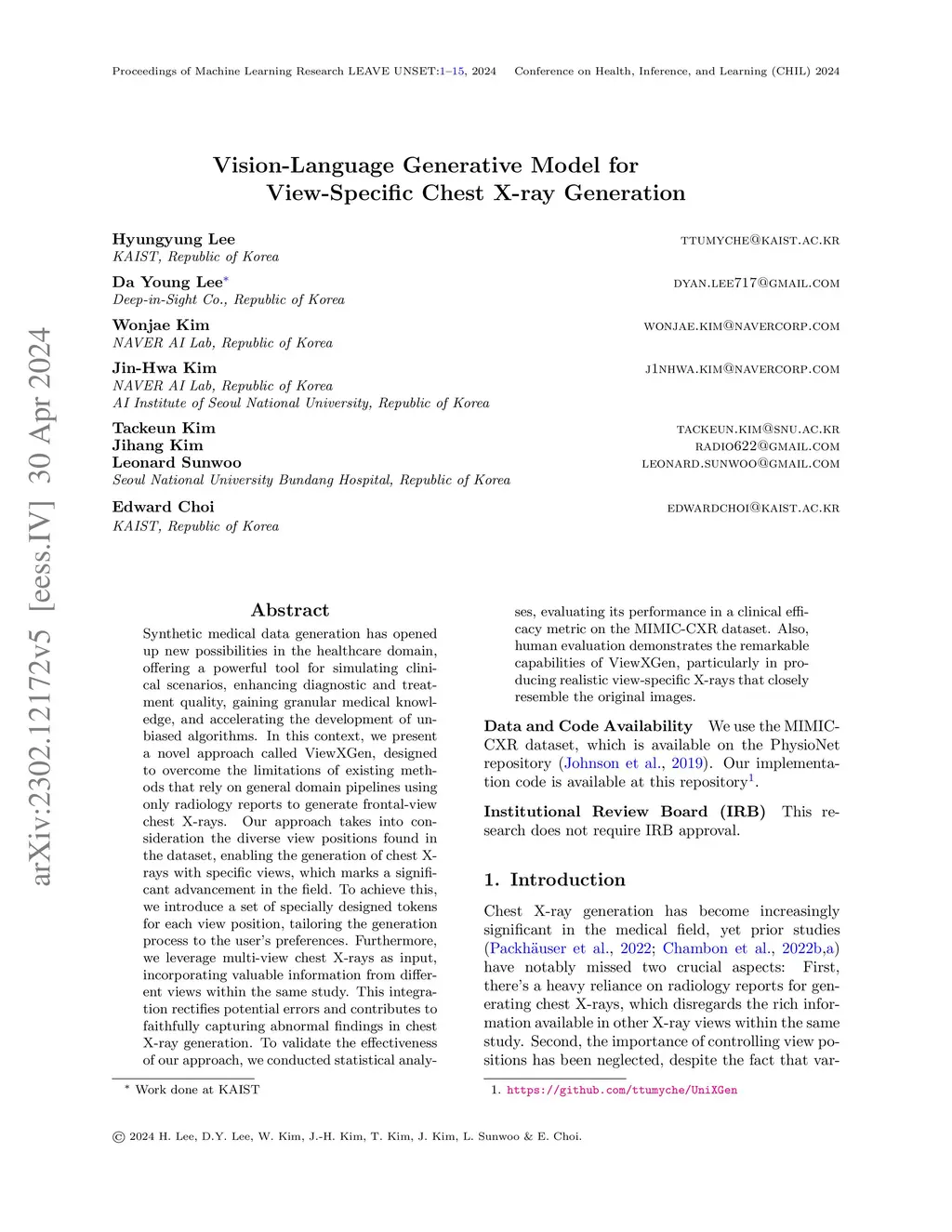 Vision-Language Generative Model for View-Specific Chest X-ray