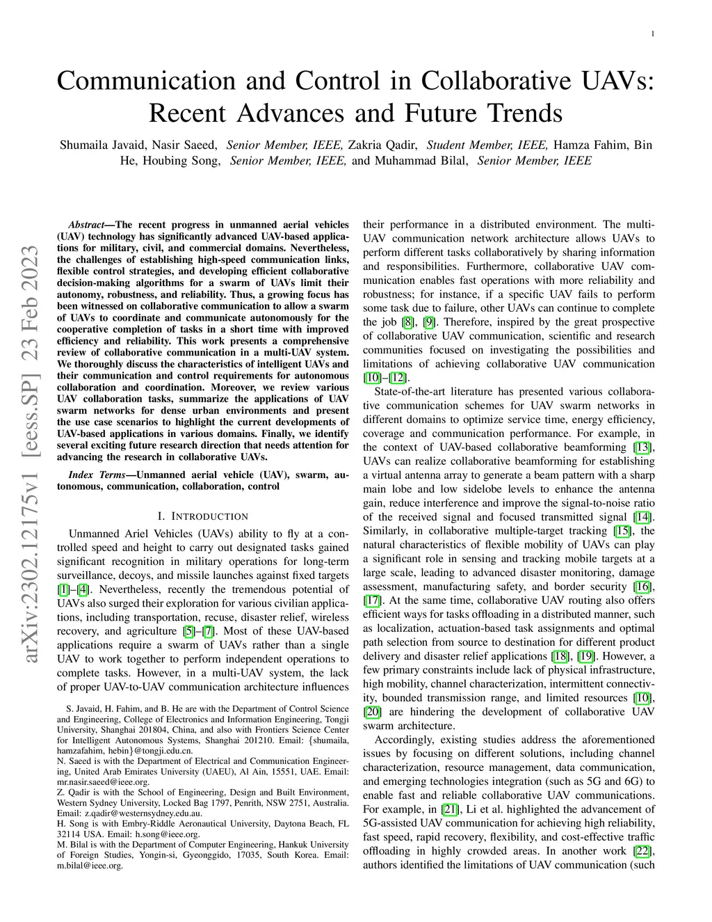 Communication and Control in Collaborative UAVs: Recent Advances and