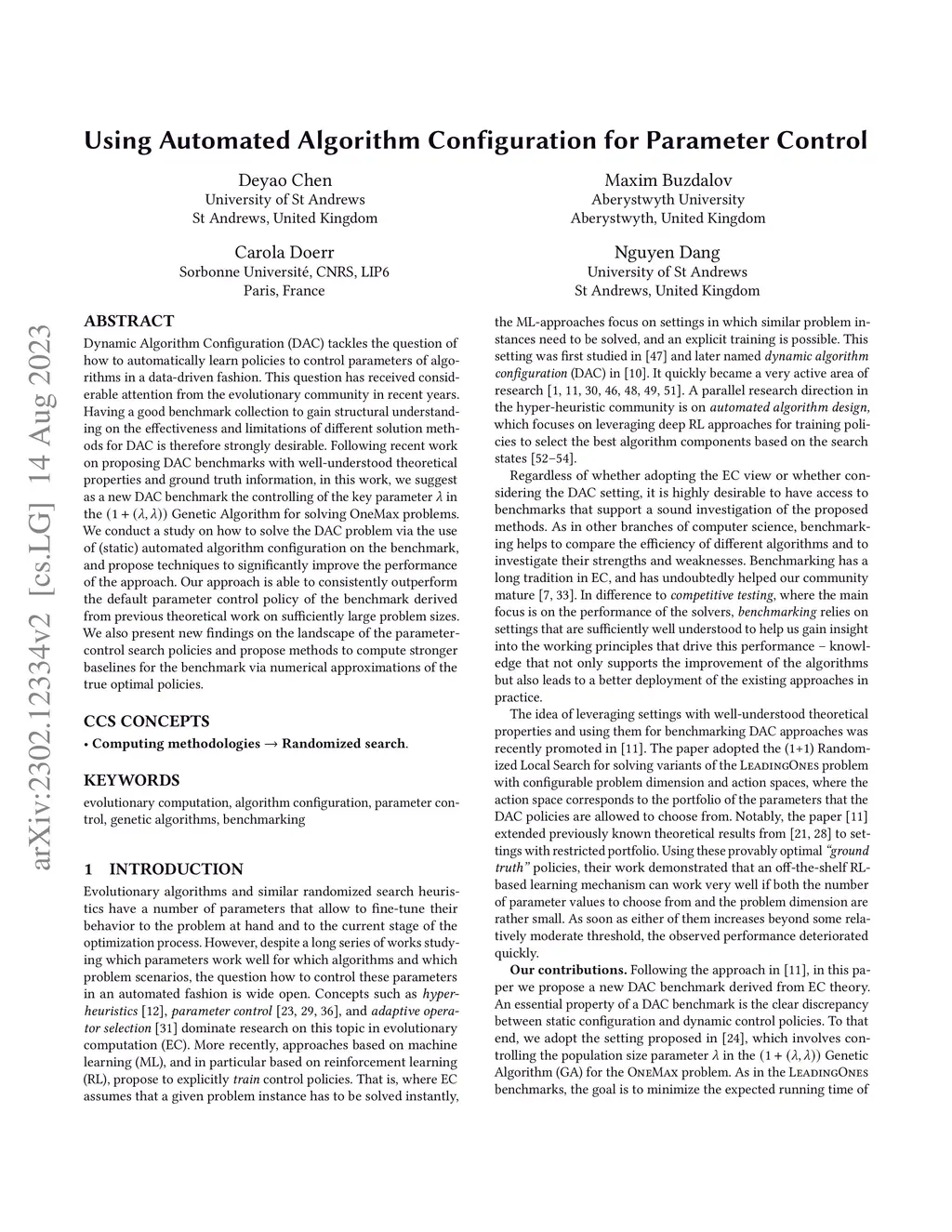 Dynamic Algorithm Configuration (DAC) tackles the question of how to automatically learn policies to control parameters of algorithms in a data-driven fashion. This question has received considerable attention from the evolutionary community in recent years. Having a good benchmark collection to gain structural understanding on the effectiveness and limitations of different solution methods for DAC is therefore strongly desirable. Following recent work on proposing DAC benchmarks with well-understood theoretical properties and ground truth information, in this work, we suggest as a new DAC benchmark the controlling of the key parameter λ\lambda in the (1+(λ,λ))(1+(\lambda,\lambda))~Genetic Algorithm for solving OneMax problems. We conduct a study on how to solve the DAC problem via the use of (static) automated algorithm configuration on the benchmark, and propose techniques to significantly improve the performance of the approach. Our approach is able to consistently outperform the default parameter control policy of the benchmark derived from previous theoretical work on sufficiently large problem sizes. We also present new findings on the landscape of the parameter-control search policies and propose methods to compute stronger baselines for the benchmark via numerical approximations of the true optimal policies.