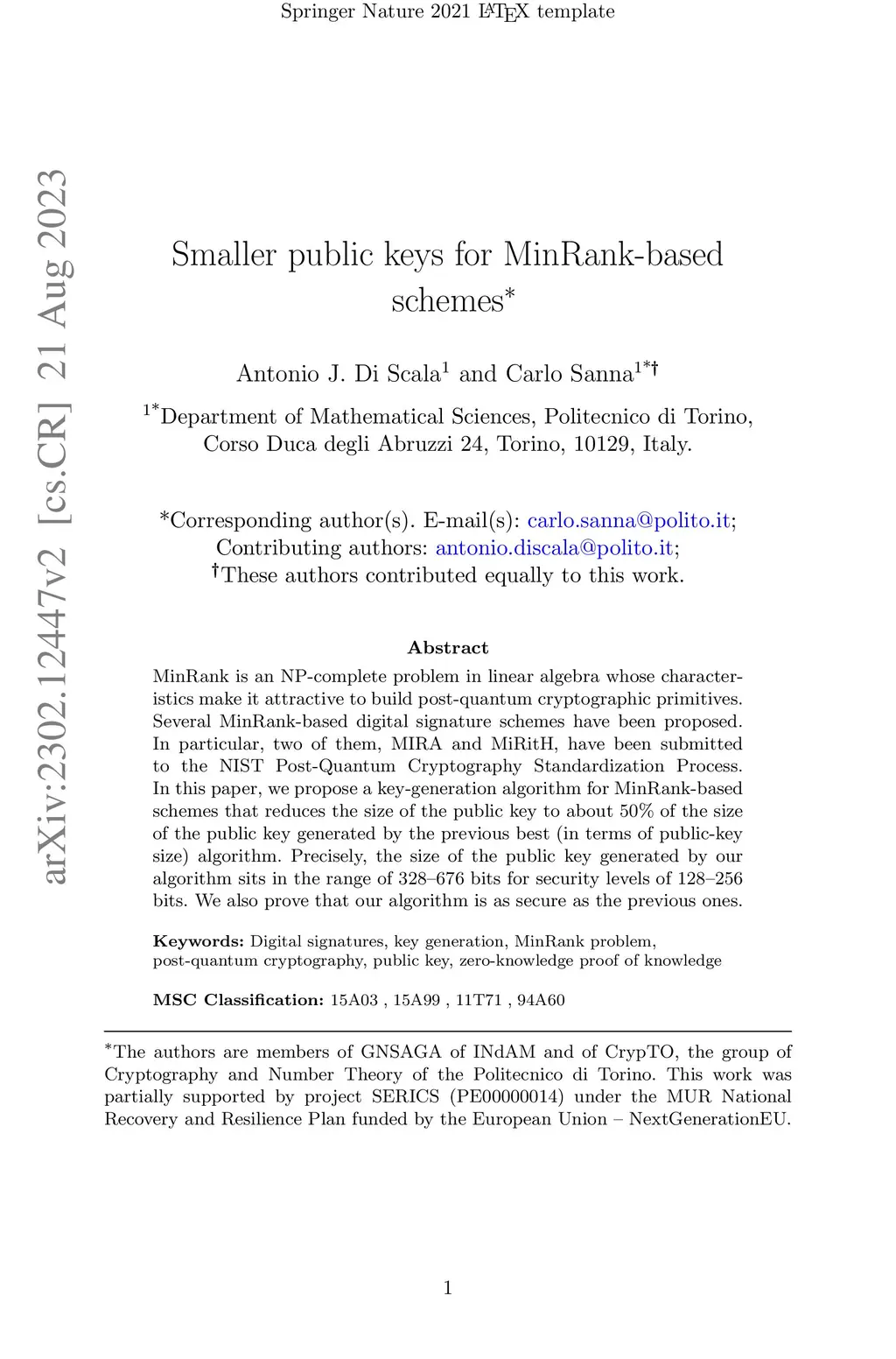 Journal of Mathematical Cryptology (J. Math. Cryptol.), 2023