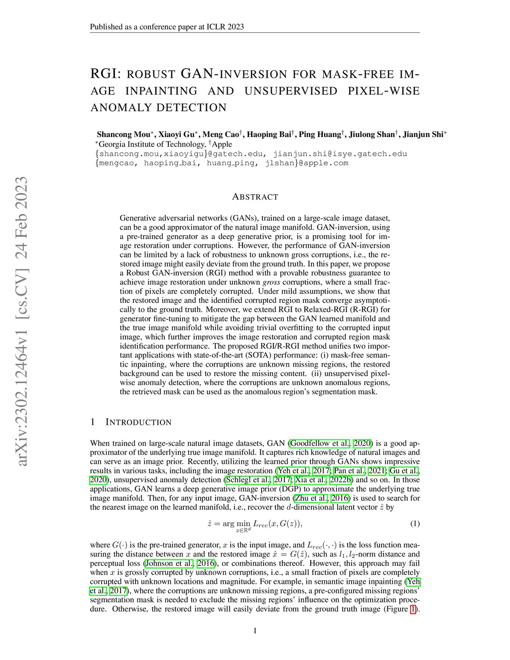 RGI: robust GAN-inversion for mask-free image inpainting and
