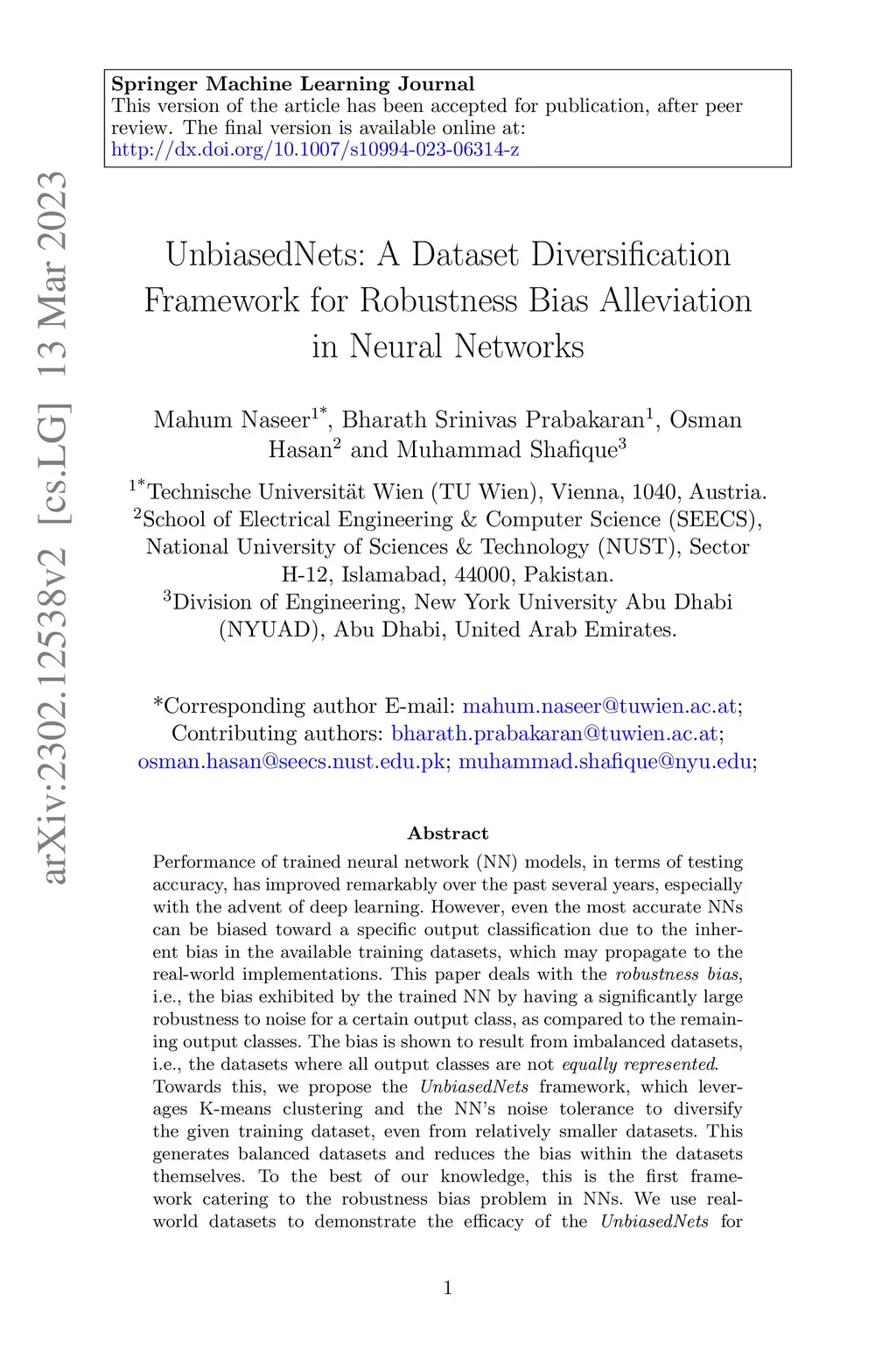 Performance of trained neural network (NN) models, in terms of testing accuracy, has improved remarkably over the past several years, especially with the advent of deep learning. However, even the most accurate NNs can be biased toward a specific output classification due to the inherent bias in the available training datasets, which may propagate to the real-world implementations. This paper deals with the robustness bias, i.e., the bias exhibited by the trained NN by having a significantly large robustness to noise for a certain output class, as compared to the remaining output classes. The bias is shown to result from imbalanced datasets, i.e., the datasets where all output classes are not equally represented. Towards this, we propose the UnbiasedNets framework, which leverages K-means clustering and the NN's noise tolerance to diversify the given training dataset, even from relatively smaller datasets. This generates balanced datasets and reduces the bias within the datasets themselves. To the best of our knowledge, this is the first framework catering to the robustness bias problem in NNs. We use real-world datasets to demonstrate the efficacy of the UnbiasedNets for data diversification, in case of both binary and multi-label classifiers. The results are compared to well-known tools aimed at generating balanced datasets, and illustrate how existing works have limited success while addressing the robustness bias. In contrast, UnbiasedNets provides a notable improvement over existing works, while even reducing the robustness bias significantly in some cases, as observed by comparing the NNs trained on the diversified and original datasets.