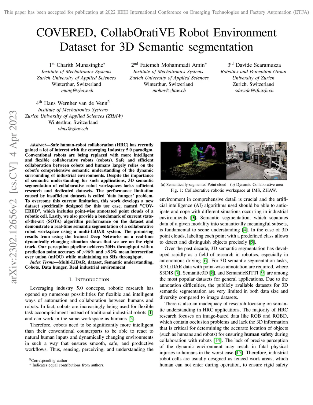 COVERED, CollabOratiVE Robot Environment Dataset for 3D Semantic