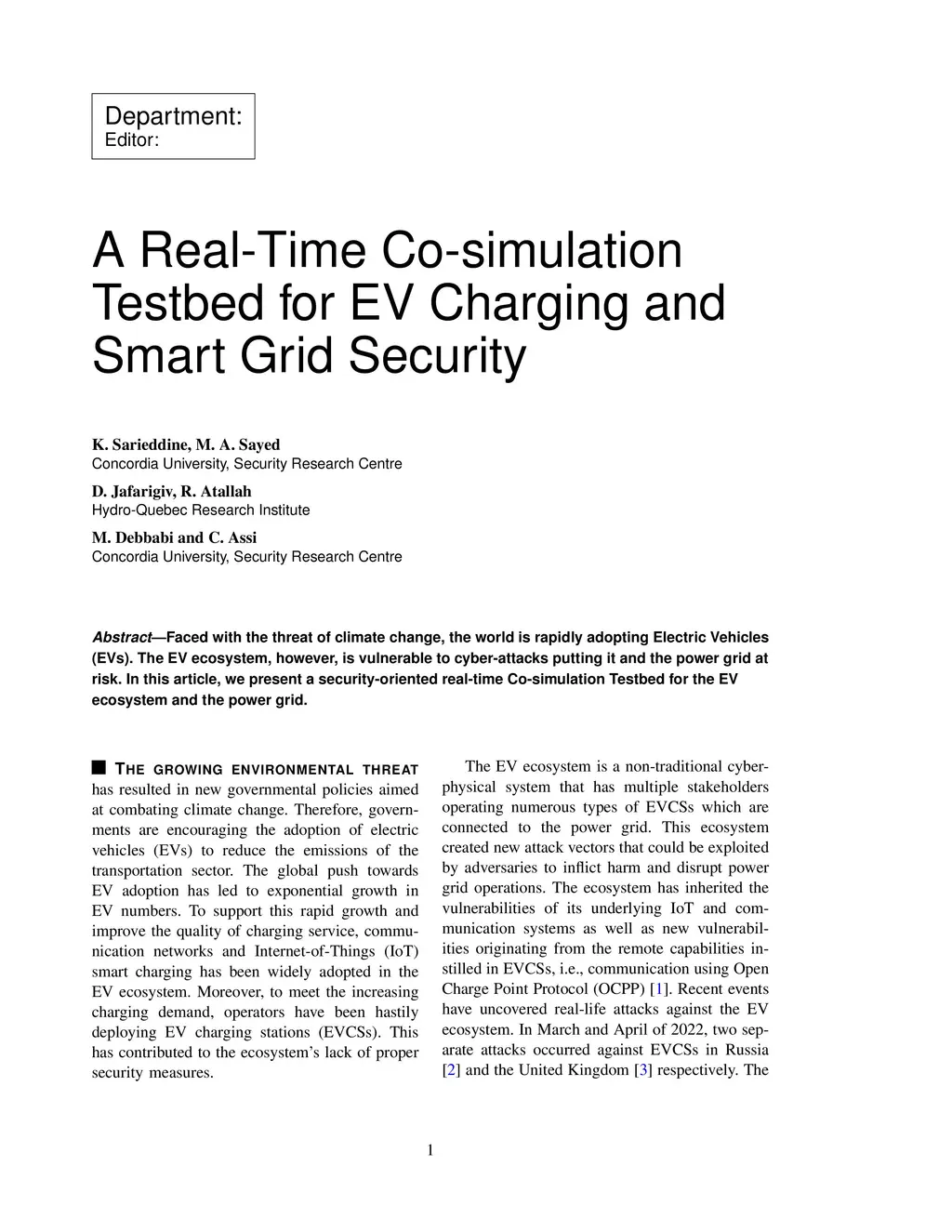 Faced with the threat of climate change, the world is rapidly adopting Electric Vehicles (EVs). The EV ecosystem, however, is vulnerable to cyber-attacks putting it and the power grid at risk. In this article, we present a security-oriented real-time Co-simulation Testbed for the EV ecosystem and the power grid.