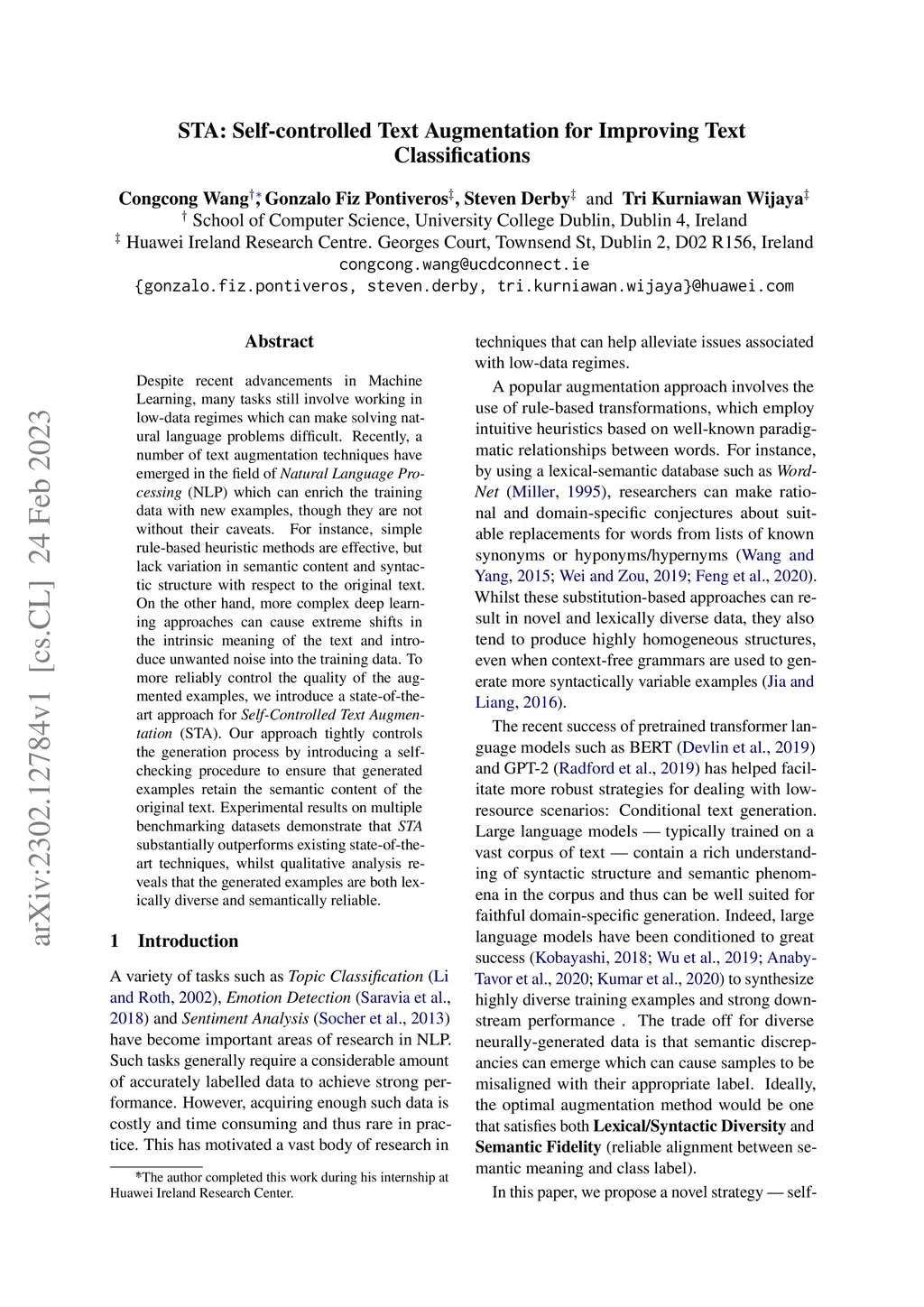 Despite recent advancements in Machine Learning, many tasks still involve working in low-data regimes which can make solving natural language problems difficult. Recently, a number of text augmentation techniques have emerged in the field of Natural Language Processing (NLP) which can enrich the training data with new examples, though they are not without their caveats. For instance, simple rule-based heuristic methods are effective, but lack variation in semantic content and syntactic structure with respect to the original text. On the other hand, more complex deep learning approaches can cause extreme shifts in the intrinsic meaning of the text and introduce unwanted noise into the training data. To more reliably control the quality of the augmented examples, we introduce a state-of-the-art approach for Self-Controlled Text Augmentation (STA). Our approach tightly controls the generation process by introducing a self-checking procedure to ensure that generated examples retain the semantic content of the original text. Experimental results on multiple benchmarking datasets demonstrate that STA substantially outperforms existing state-of-the-art techniques, whilst qualitative analysis reveals that the generated examples are both lexically diverse and semantically reliable.