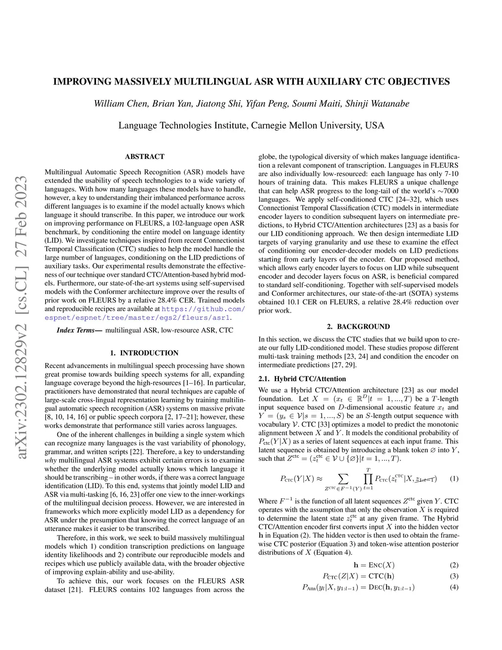 Multilingual Automatic Speech Recognition (ASR) models have extended the usability of speech technologies to a wide variety of languages. With how many languages these models have to handle, however, a key to understanding their imbalanced performance across different languages is to examine if the model actually knows which language it should transcribe. In this paper, we introduce our work on improving performance on FLEURS, a 102-language open ASR benchmark, by conditioning the entire model on language identity (LID). We investigate techniques inspired from recent Connectionist Temporal Classification (CTC) studies to help the model handle the large number of languages, conditioning on the LID predictions of auxiliary tasks. Our experimental results demonstrate the effectiveness of our technique over standard CTC/Attention-based hybrid models. Furthermore, our state-of-the-art systems using self-supervised models with the Conformer architecture improve over the results of prior work on FLEURS by a relative 28.4% CER. Trained models and reproducible recipes are available at https://github.com/espnet/espnet/tree/master/egs2/fleurs/asr1 .