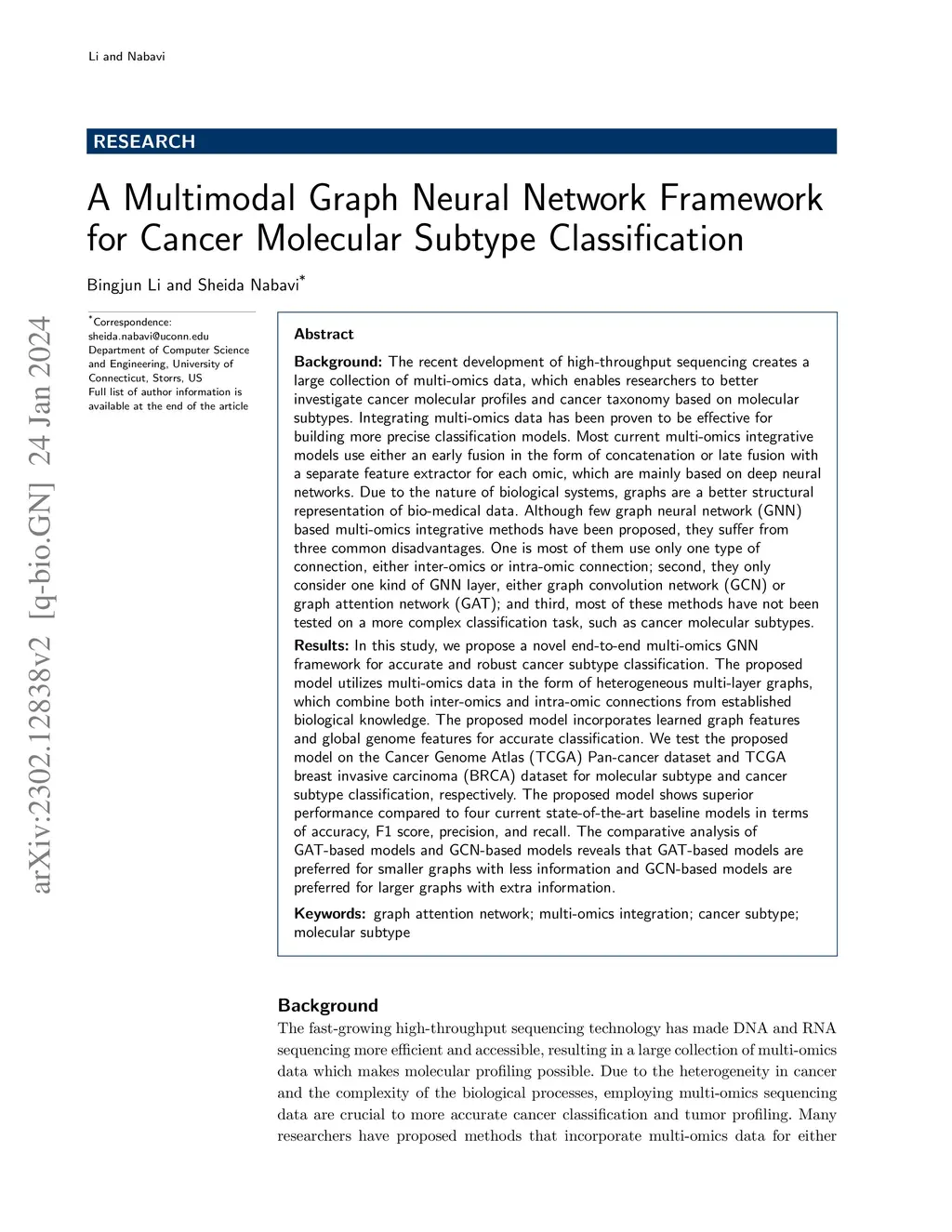A Multimodal Graph Neural Network Framework of Cancer Molecular Subtype