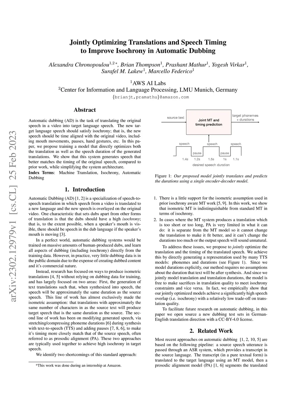 Automatic dubbing (AD) is the task of translating the original speech in a video into target language speech. The new target language speech should satisfy isochrony; that is, the new speech should be time aligned with the original video, including mouth movements, pauses, hand gestures, etc. In this paper, we propose training a model that directly optimizes both the translation as well as the speech duration of the generated translations. We show that this system generates speech that better matches the timing of the original speech, compared to prior work, while simplifying the system architecture.