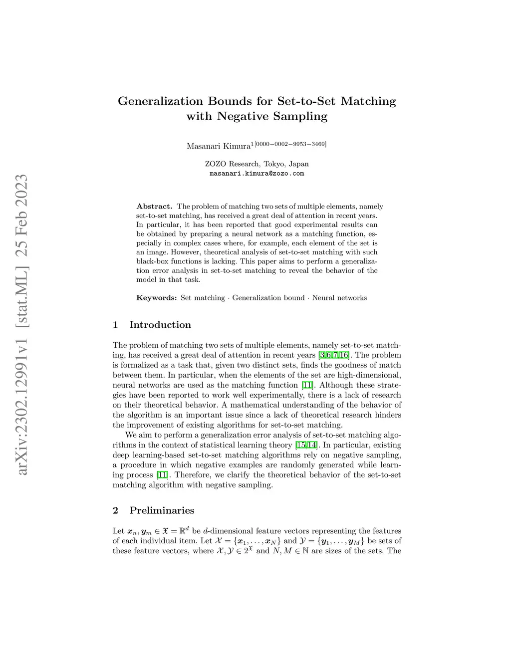 Generalization Bounds for Set-to-Set Matching with Negative Sampling