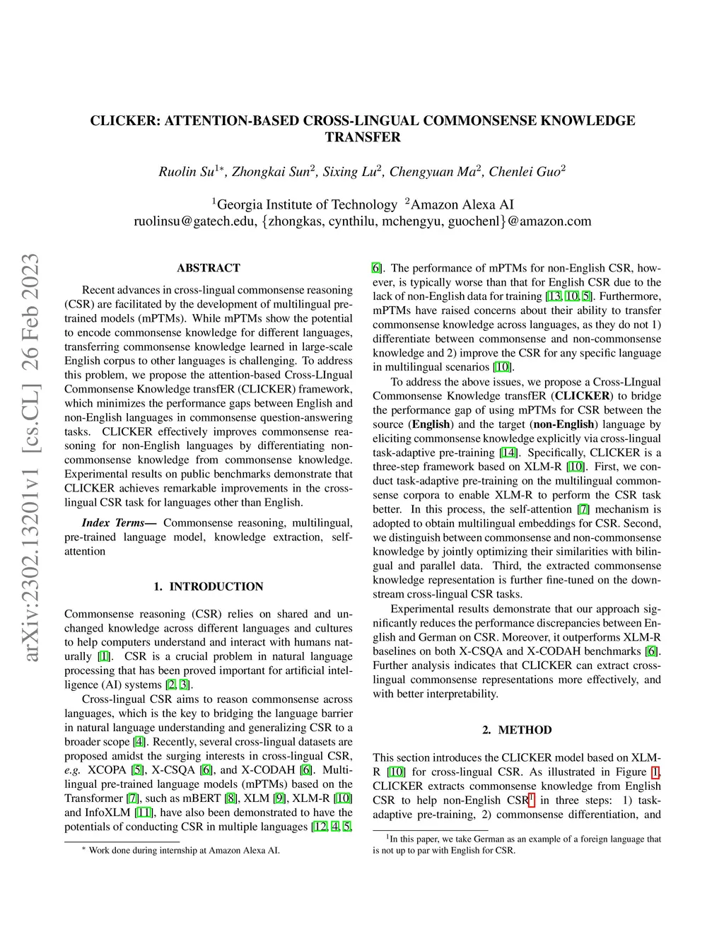 CLICKER: Attention-Based Cross-Lingual Commonsense Knowledge Transfer