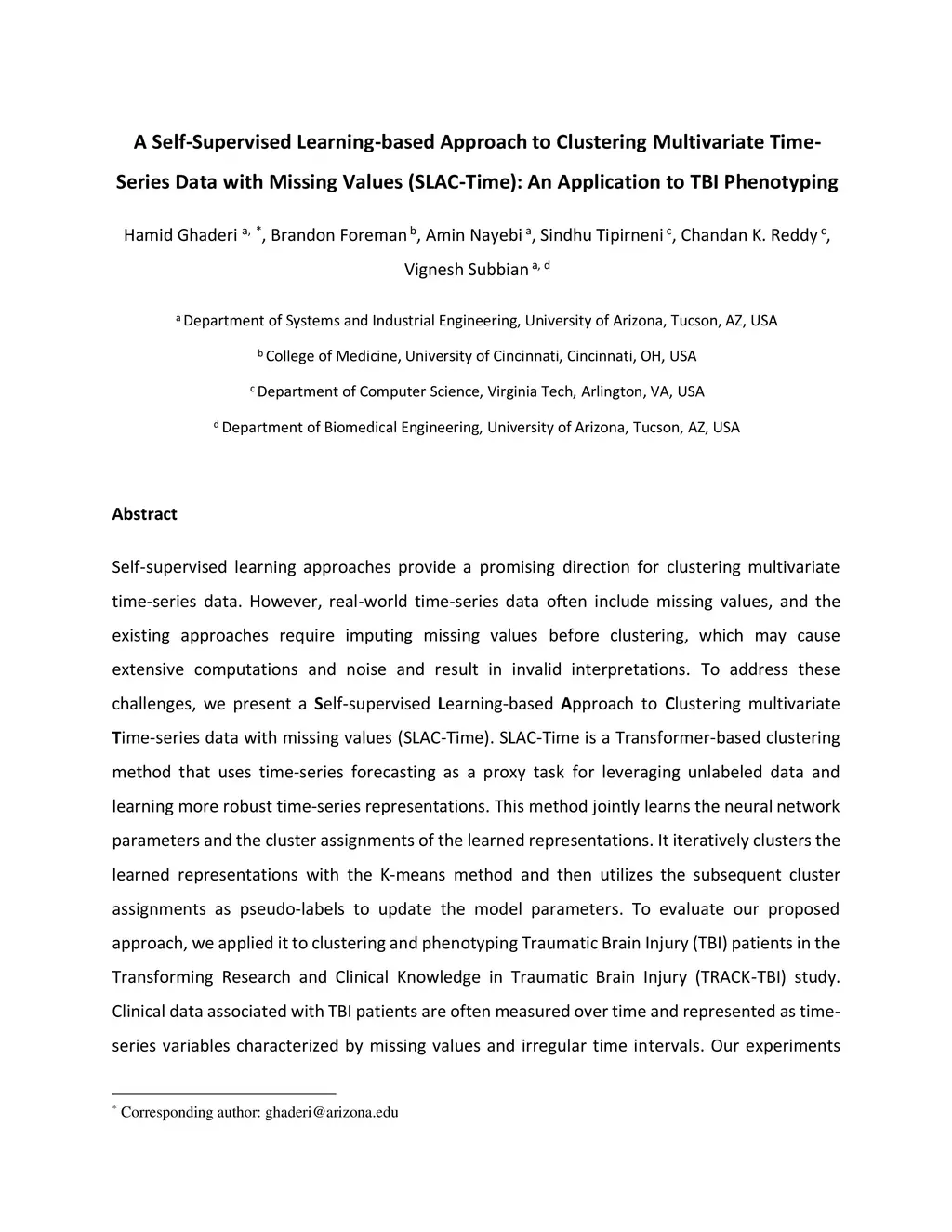 Time-Series Data with Missing Values (SLAC-Time): An Application to TBI