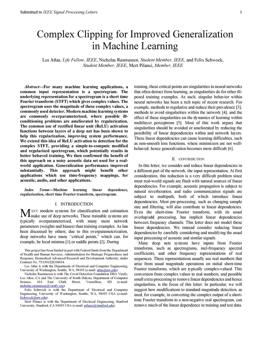 For many machine learning applications, a common input representation is a spectrogram. The underlying representation for a spectrogram is a short time Fourier transform (STFT) which gives complex values. The spectrogram uses the magnitude of these complex values, a commonly used detector. Modern machine learning systems are commonly overparameterized, where possible ill-conditioning problems are ameliorated by regularization. The common use of rectified linear unit (ReLU) activation functions between layers of a deep net has been shown to help this regularization, improving system performance. We extend this idea of ReLU activation to detection for the complex STFT, providing a simple-to-compute modified and regularized spectrogram, which potentially results in better behaved training. We then confirmed the benefit of this approach on a noisy acoustic data set used for a real-world application. Generalization performance improved substantially. This approach might benefit other applications which use time-frequency mappings, for acoustic, audio, and other applications.