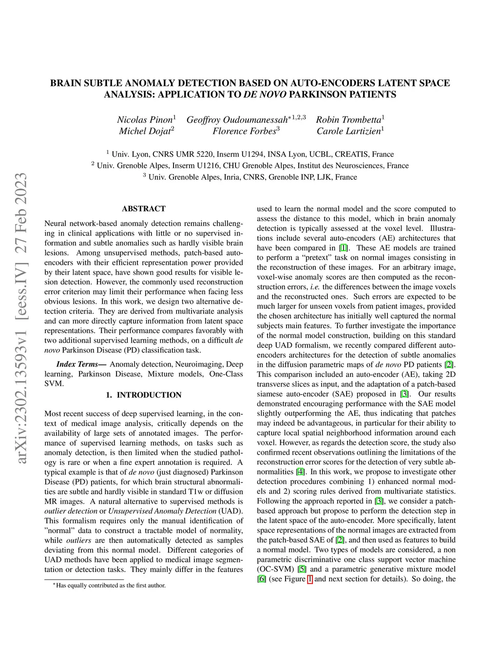 Neural network-based anomaly detection remains challenging in clinical applications with little or no supervised information and subtle anomalies such as hardly visible brain lesions. Among unsupervised methods, patch-based auto-encoders with their efficient representation power provided by their latent space, have shown good results for visible lesion detection. However, the commonly used reconstruction error criterion may limit their performance when facing less obvious lesions. In this work, we design two alternative detection criteria. They are derived from multivariate analysis and can more directly capture information from latent space representations. Their performance compares favorably with two additional supervised learning methods, on a difficult de novo Parkinson Disease (PD) classification task.
