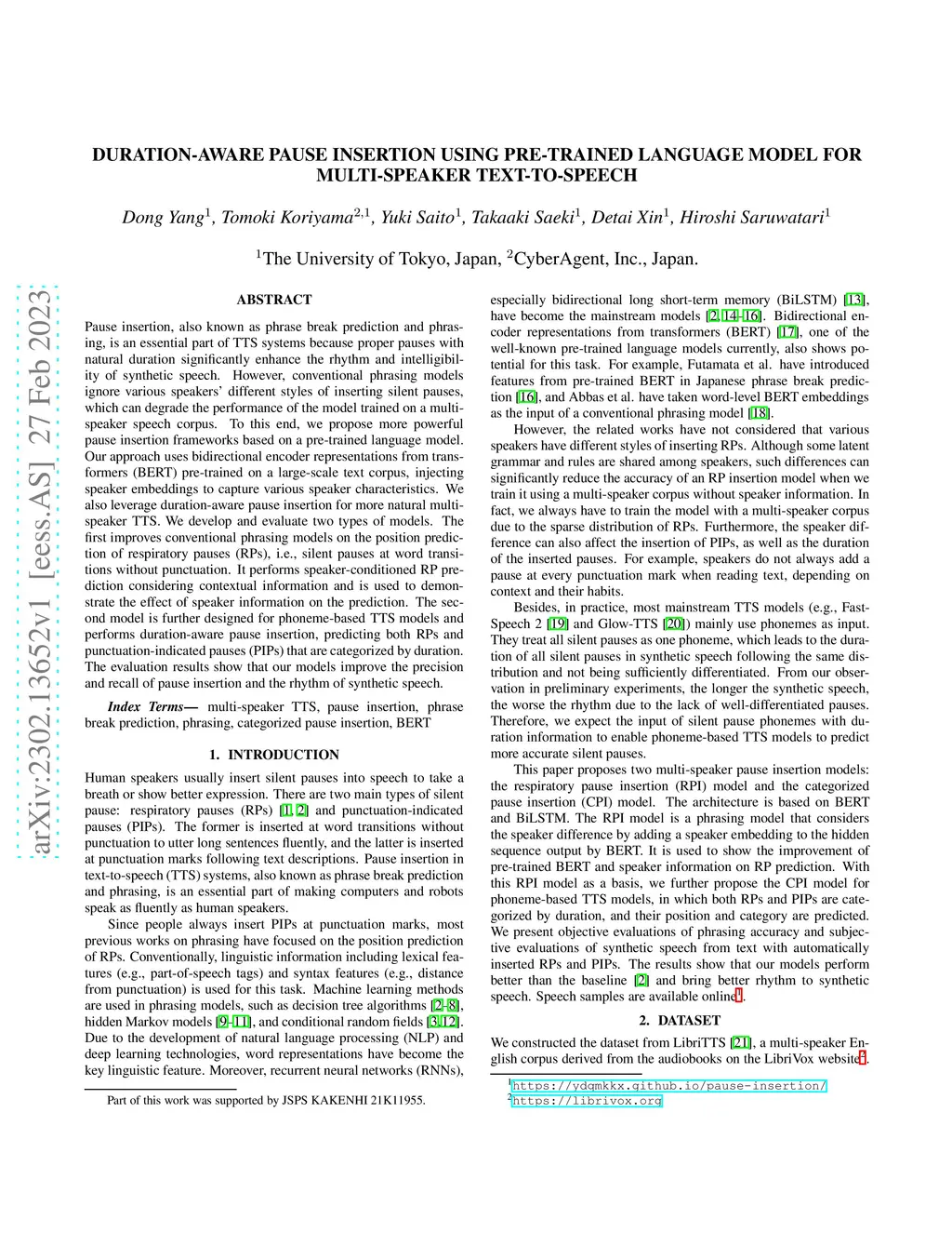 Duration-aware pause insertion using pre-trained language model for